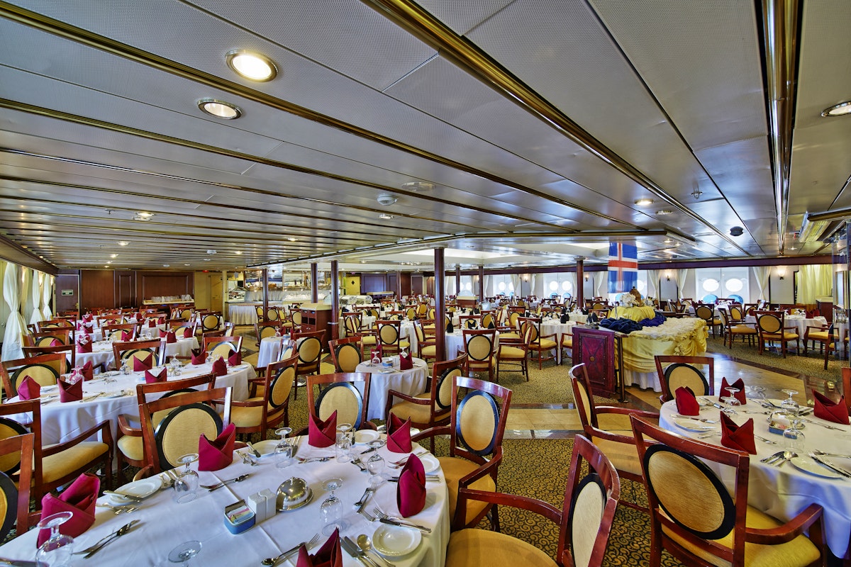 Die Atmosphäre an Bord ist nordisch entspannt. Hier steht die einzigartige Landschaft im Mittelpunkt und nicht die tägliche Animation. Genießen Sie vom Sonnendeck oder der Panorama-Aussichts-Lounge aus unvergessliche Ausblicke auf die spektakuläre arktische Landschaft.