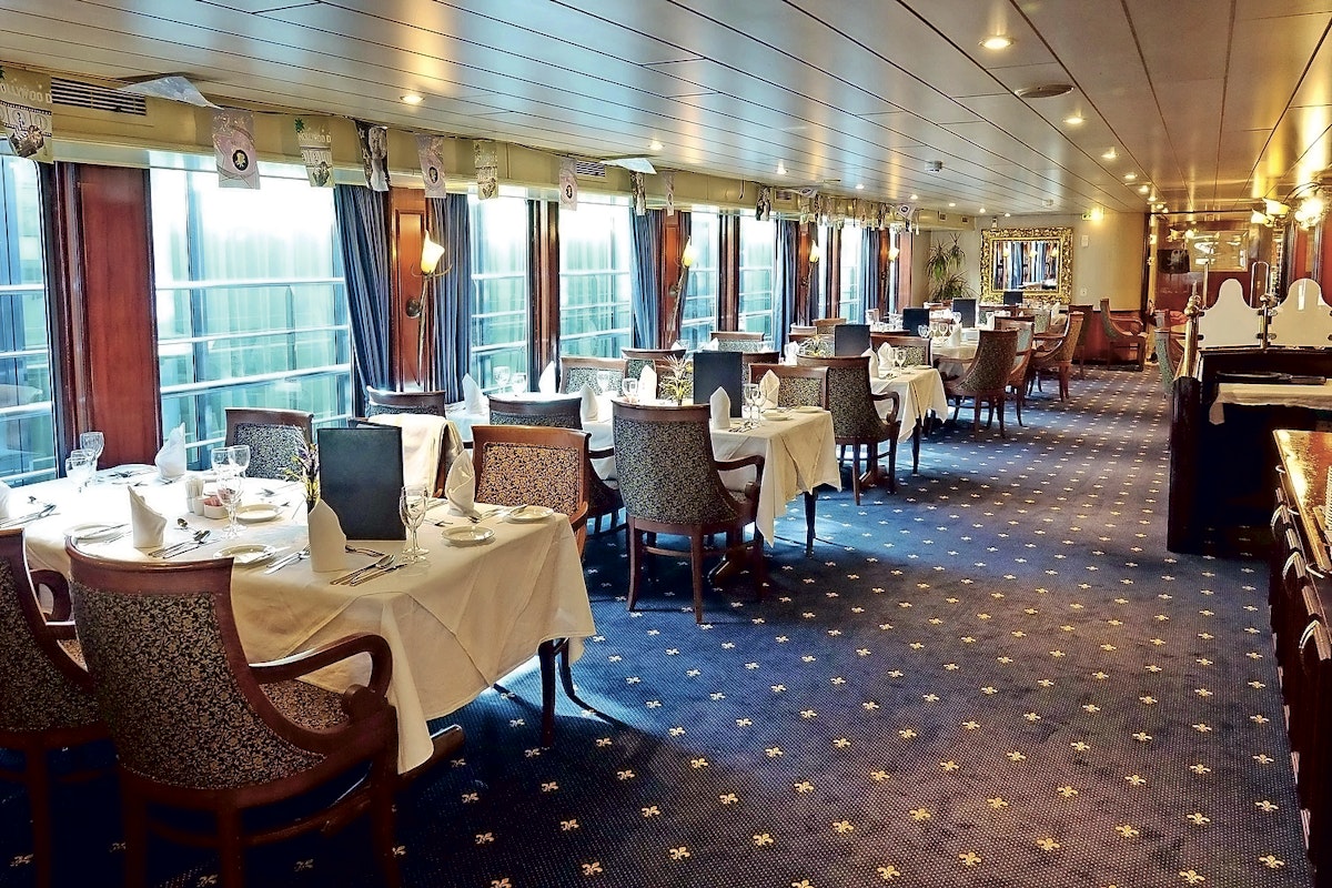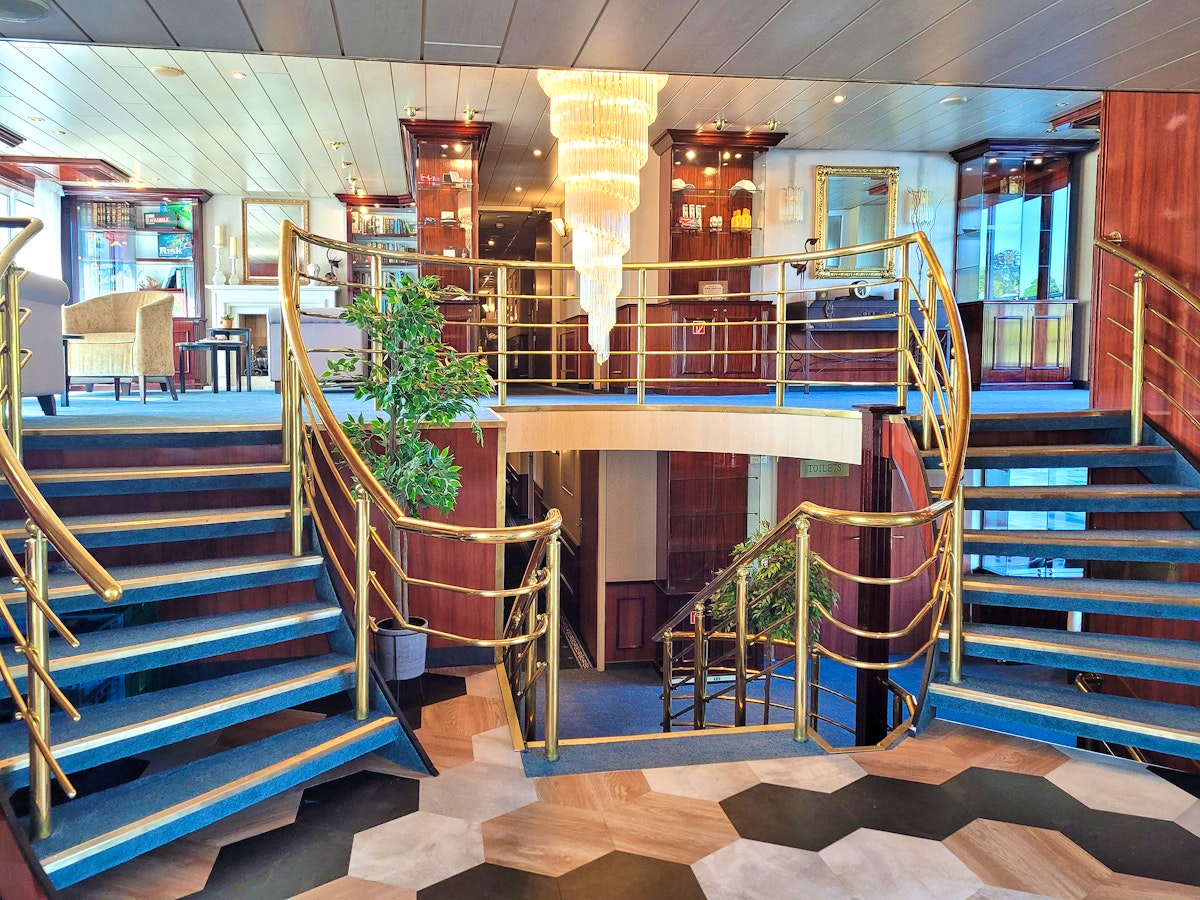 Das komplett renovierte Schiff im sehr edlen und englischen Stil bietet Ihnen auf 3 Decks Platz sowie eine zwanglose und gemütliche Atmosphäre für 143 Gäste. Kostenfreies WLAN steht auf dem gesamten Schiff zur Verfügung. Auf dem Sonnendeck haben Sie einen 360-Grad-Panorama-Blick auf die Landschaften von IJssel und Rhein. Das Schiff verfügt über eine Bibliothek und ein Bordshop sowie über eine gemütliche Lounge mit Bar und Tanzfläche. Nach einen erlebnisreichen Tag können Sie in der Sauna und im Whirlpool entspannen. Sportlich betätigen können Sie sich im Fitnessraum mit Laufband, Fahrradtrainer und Gewichten.