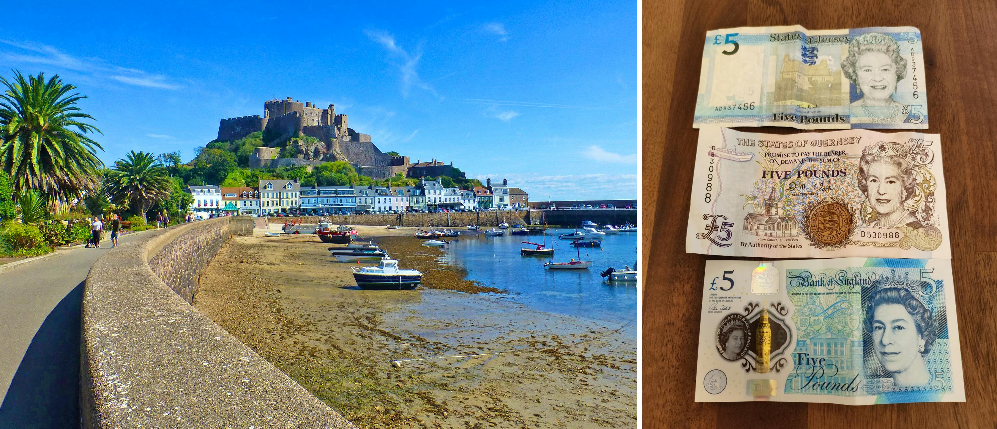 Die Burg von Gorey und das Geld auf den Kanalinseln - Jersey Pfund, Guernsey Pfund und Britisches Pfund