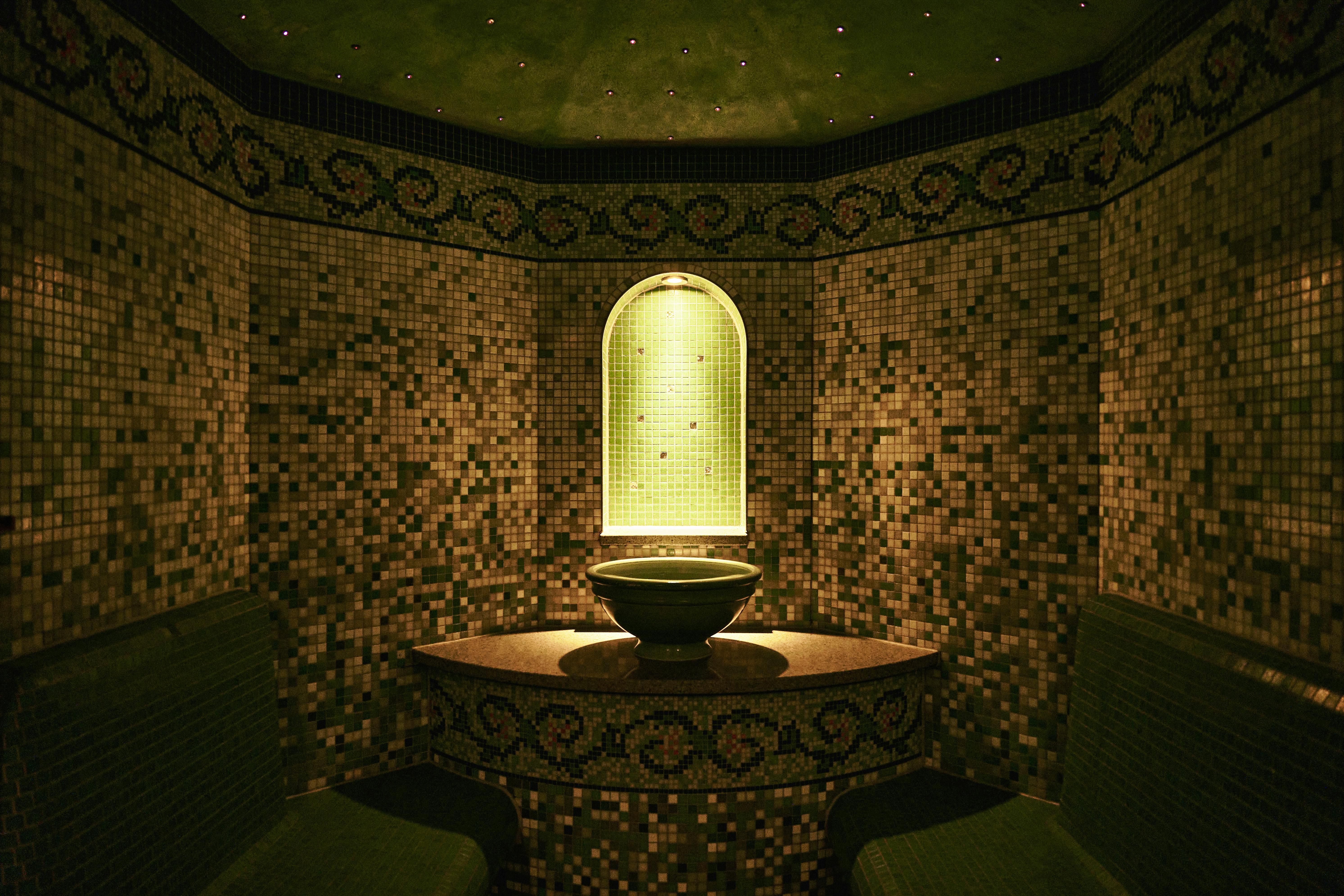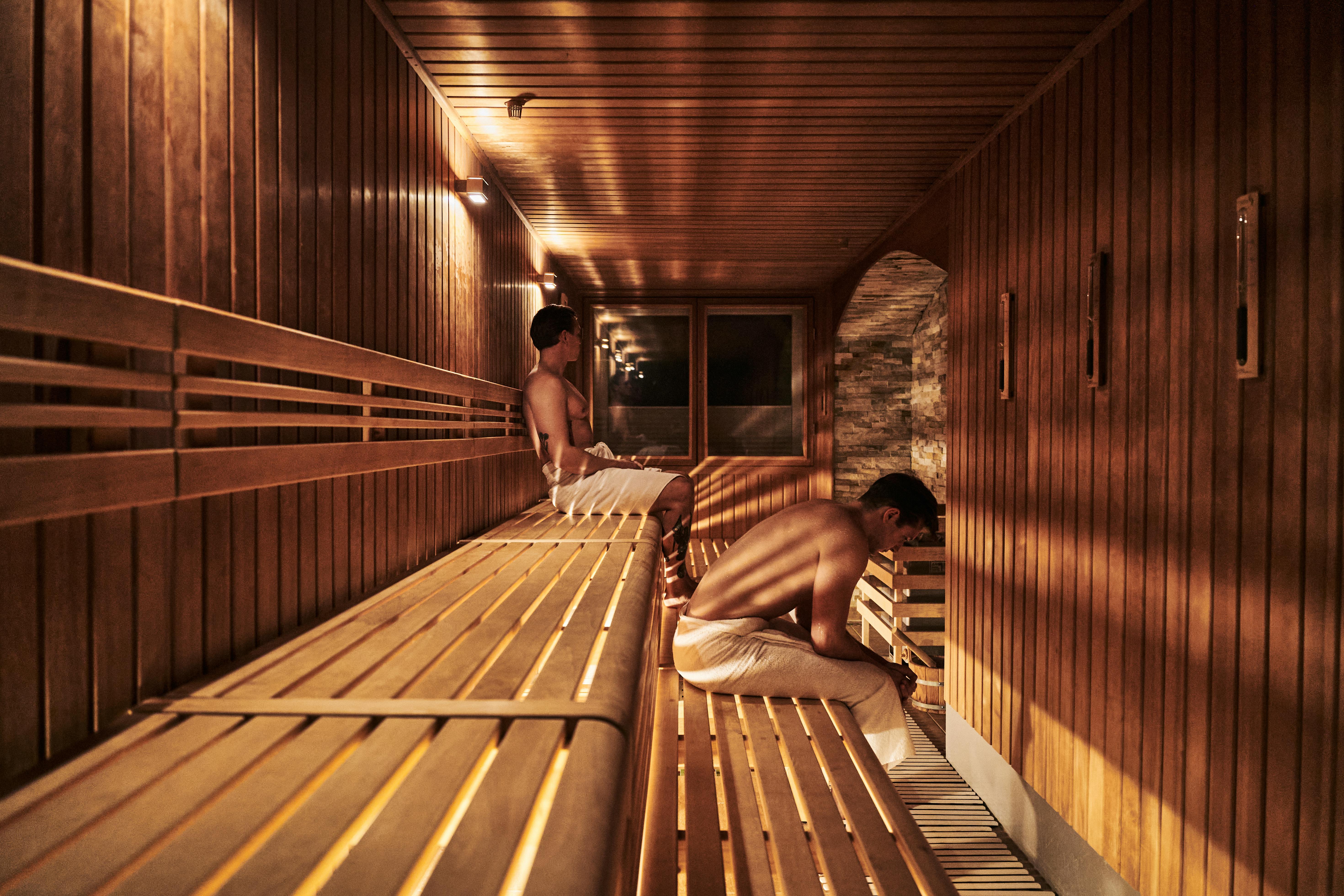 Die Saunalandschaft besteht aus der Finnischen Sauna, dem Dampfbad, mehreren Erlebnisduschen, einem Kneippfußbad, dem Ruhebereich mit Komfortliegen und Trinkbrunnen und der Außenterrasse.
