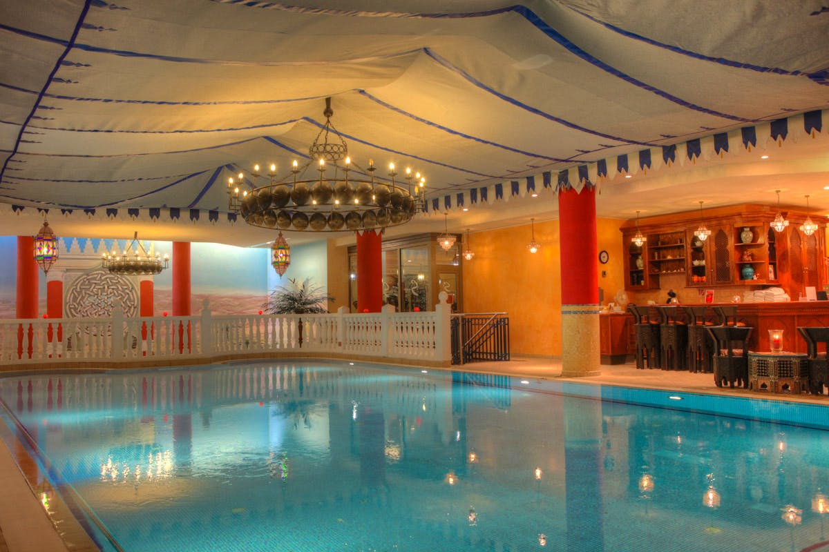 • Die große orientalische Wellness-Oase mit Schwimmbad und Whirlpool steht Ihnen für Ihr Wohlbefinden zur Verfügung.