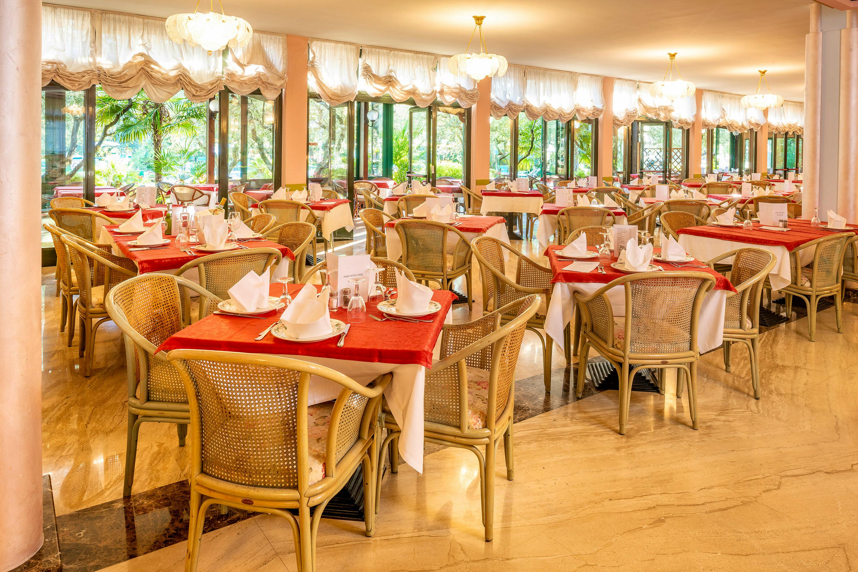 Im Park Hotel Oasi genießen die Gäste eine abwechslungsreiche Verpflegung. Das hoteleigene Restaurant bietet täglich ein reichhaltiges Frühstücksbuffet sowie abends eine Auswahl an regionalen und internationalen Gerichten, welche Ihnen serviert werden.