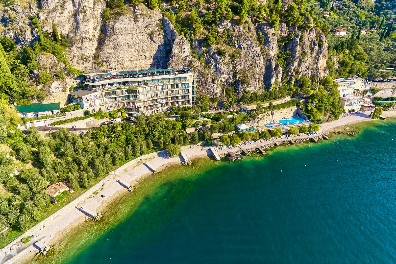Das Hotel selbst wurde an einer Felswand angebaut, in ruhiger Lage mit Panoramablick und direkt am Gardasee gelegen.