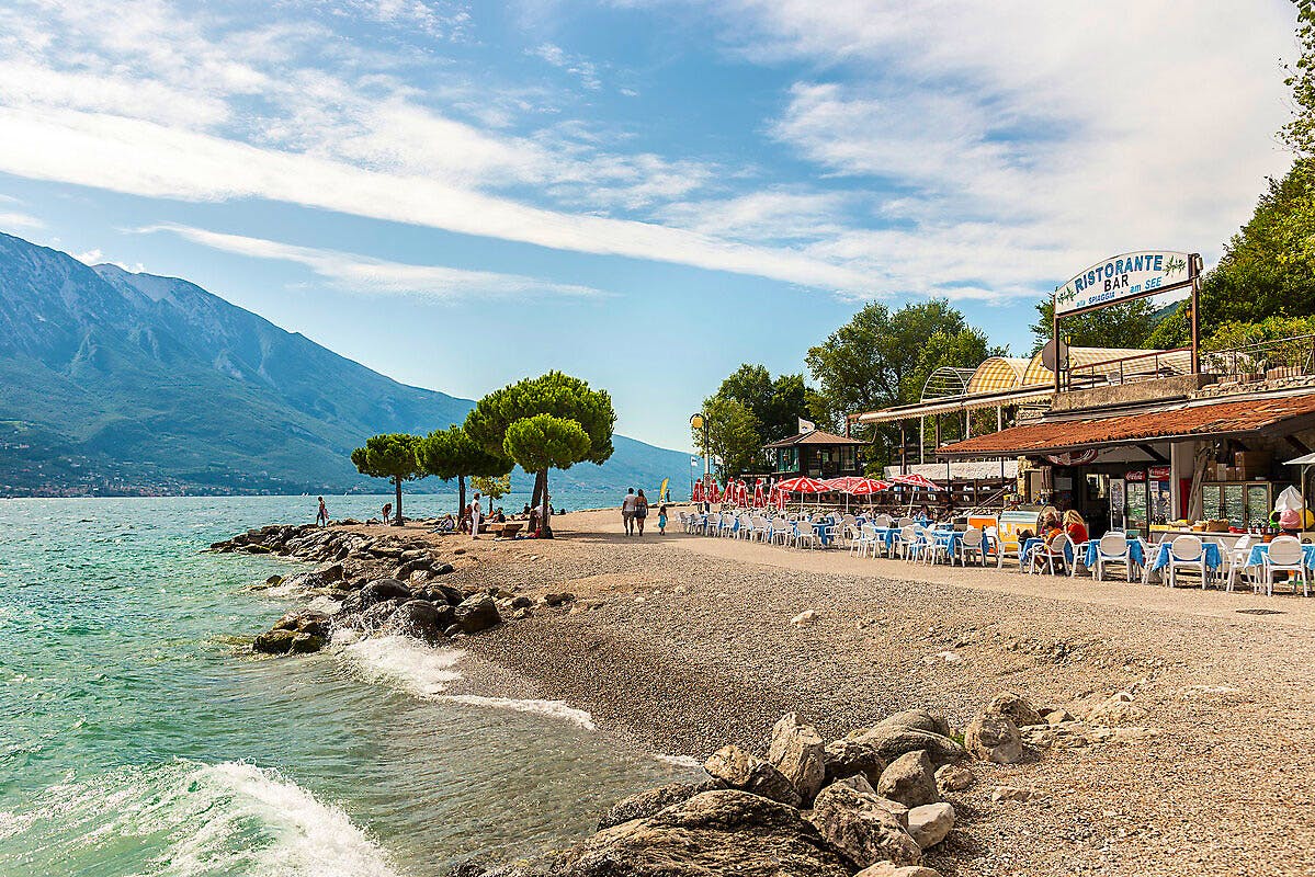 Zu Füßen steil aufragender Felswände schmiegt sich das Städtchen Limone um seinen kleinen Hafen. Einst spielte er die wichtigste Rolle in dem ehemaligen Fischerdorf. Doch seit 1931 die Westumfahrung des Gardasees, die Gardesana Occidentale, fertig wurde, hat sich das 1200-Einwohner-Örtchen dem Fremdenverkehr zugewandt. Eine Uferpromenade wurde gebaut und immer mehr Hotels zogen sich terrassenförmig um den Ortskern – was fast allen Gästezimmern einen herrlichen Ausblick auf den Gardasee beschert. Anders, als der Name Limone vermuten lässt, leitet er sich nicht von den vielen umliegenden Zitronengärten ab, sondern von „Limes“ – Grenze. Hier endete einst die Republik Venedig. Nichtsdestotrotz präsentiert Limones die Zitrone im Wappen, umgeben von einem Oliven- und einem Eichenzweig, die die beiden anderen wichtigsten Bäume der Umgebung symbolisieren. Reisende steuern Limone an, um das charmante Zusammenspiel der schroffen Felsen, des Gardasees und der hübschen Architektur des Städtchens zu genießen. Das warme Klima beschert den Gärten subtropischen Pflanzenreichtum. Flanieren und Baden sind die schönsten Freizeitbeschäftigungen. Aber Limone kann noch mehr: Die Kalkalpen sind ein herausforderndes Wandergebiet. Einen guten Einstieg bietet der Panoramaweg entlang des Sopino-Bachs über zum Sopino Wasserfall – ein verlockendes Ziel für kleine Wanderungen.