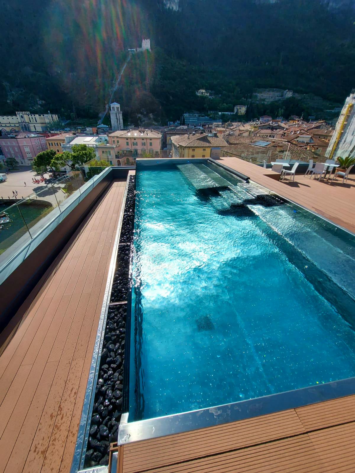 Ein moderner Spa-Bereich mit Pool und Dachterrasse lädt ein, den Blick über den Gardasee schweifen zu lassen.