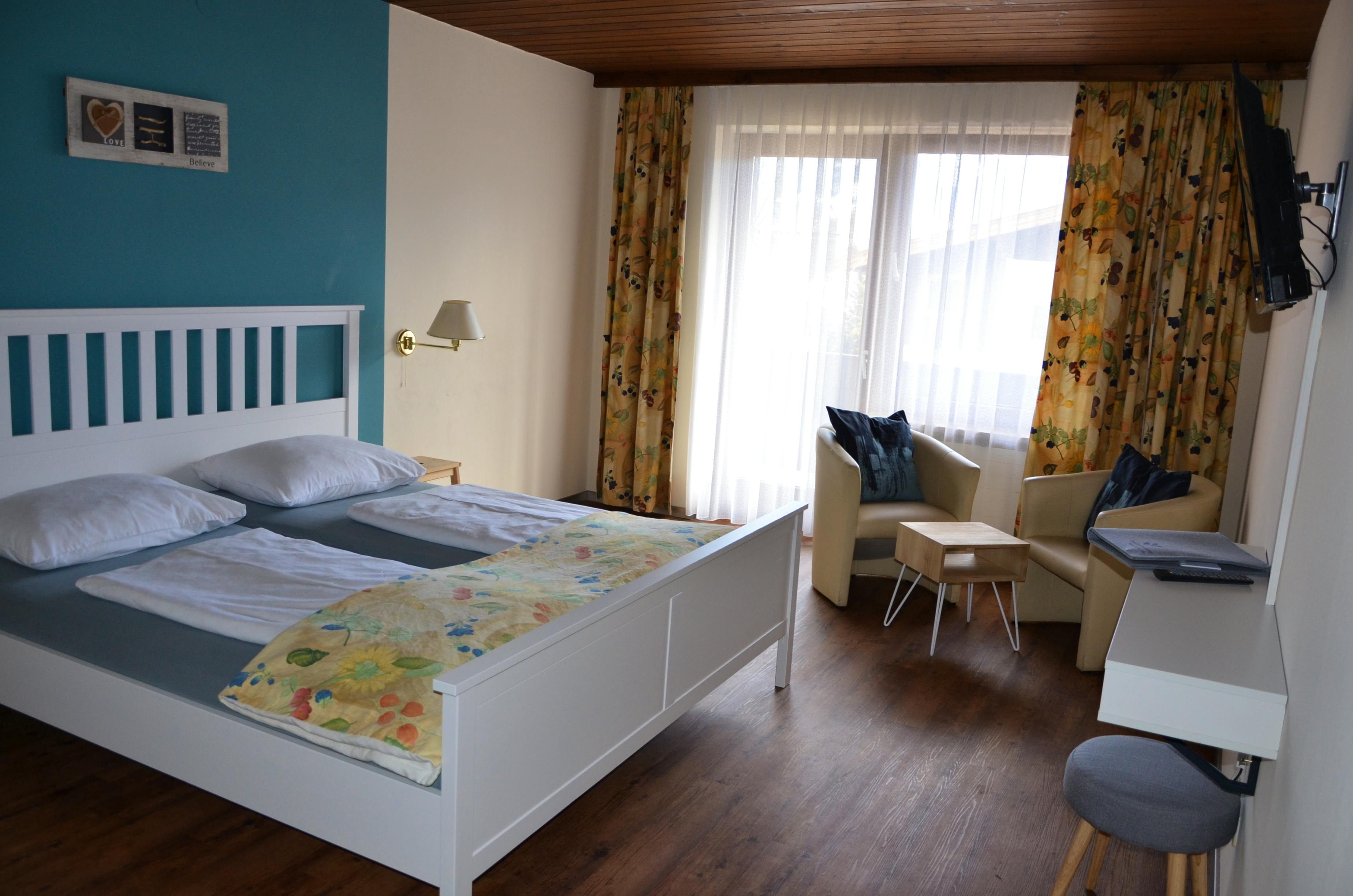 Die Doppelzimmer Komfort sind ca. 23 m² groß und verfügen über Bad oder Dusche/WC, Föhn, Flachbild-TV, Sitzbereich und einem Balkon.