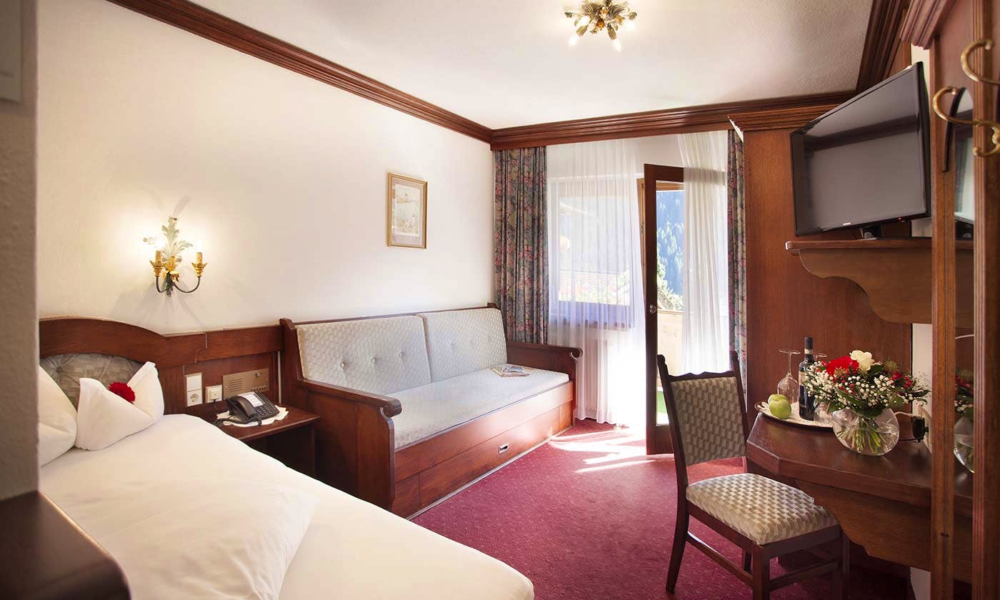 Die 35 gemütlichen Zimmer verfügen über Bad oder Dusche/WC, Föhn, Kabel-TV, Radio, Telefon, Safe und einem Balkon.