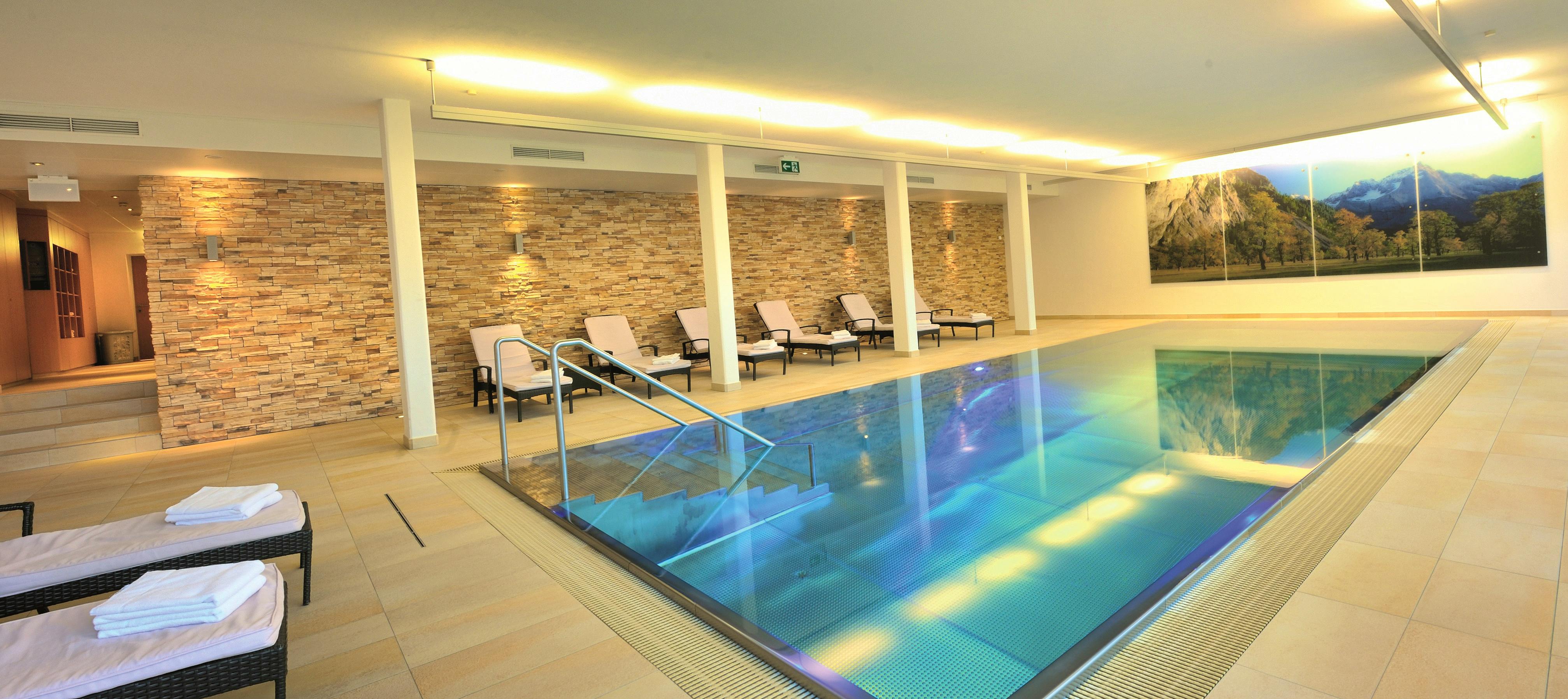 Ein besonderes Highlight ist der 300 Quadratmeter große Vital- und Wellnessbereich mit modernem Indoor-Pool, Finnischer Sauna, Bio-Sauna, Dampfbad, Infrarotkabine, Solarium und einem Zirbenruheraum.