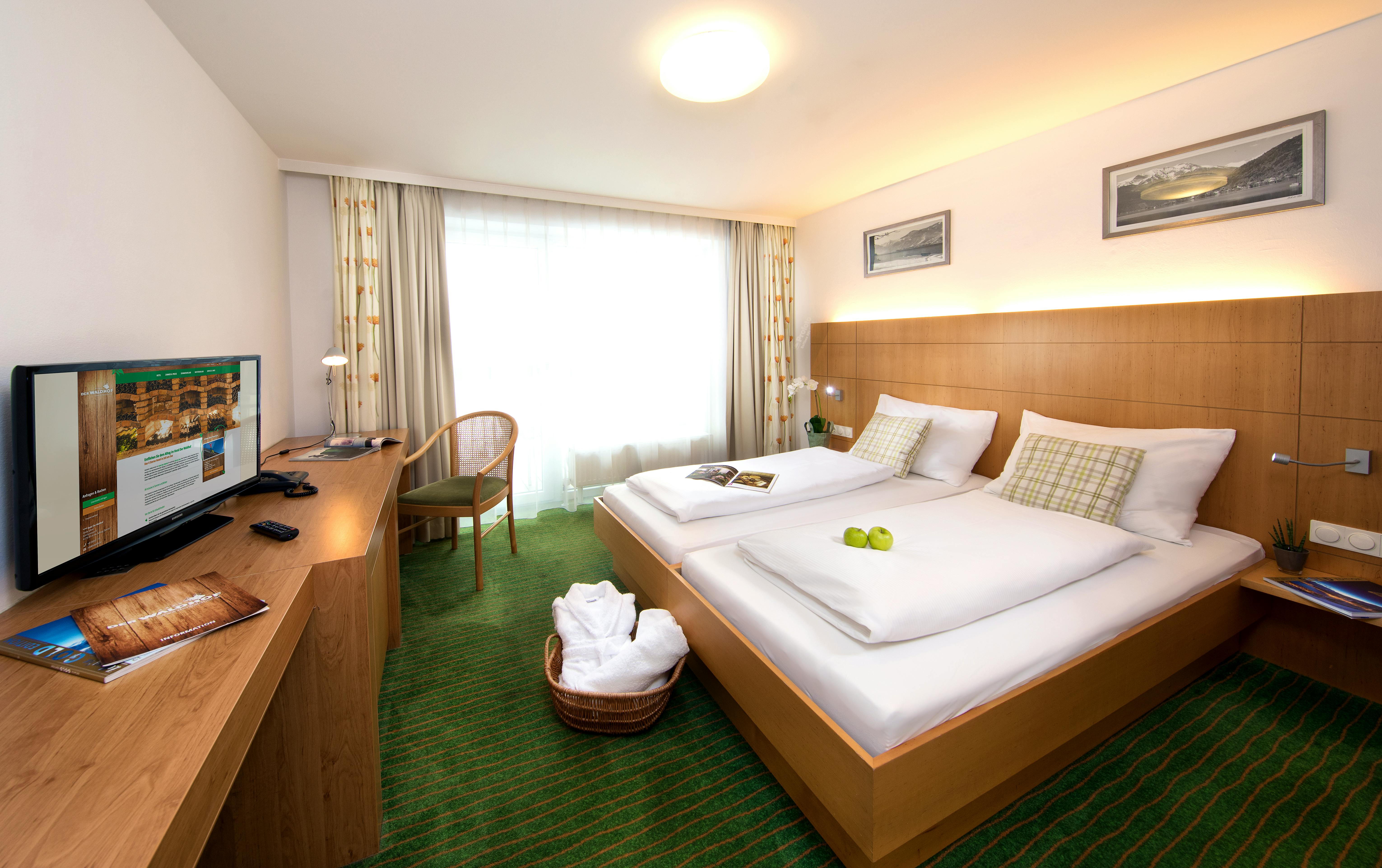 Das Doppelzimmer Superior ist ca. 25 m² groß und verfügt über die gleiche Ausstattung wie das Doppelzimmer Komfort. Auf Anfrage stehen Ihnen in diesem Zimmer ein Babybett gegen Gebühr zur Verfügung. Diese Zimmer befinden sich im Hauptgebäude und besitzen teilweise einen Balkon.