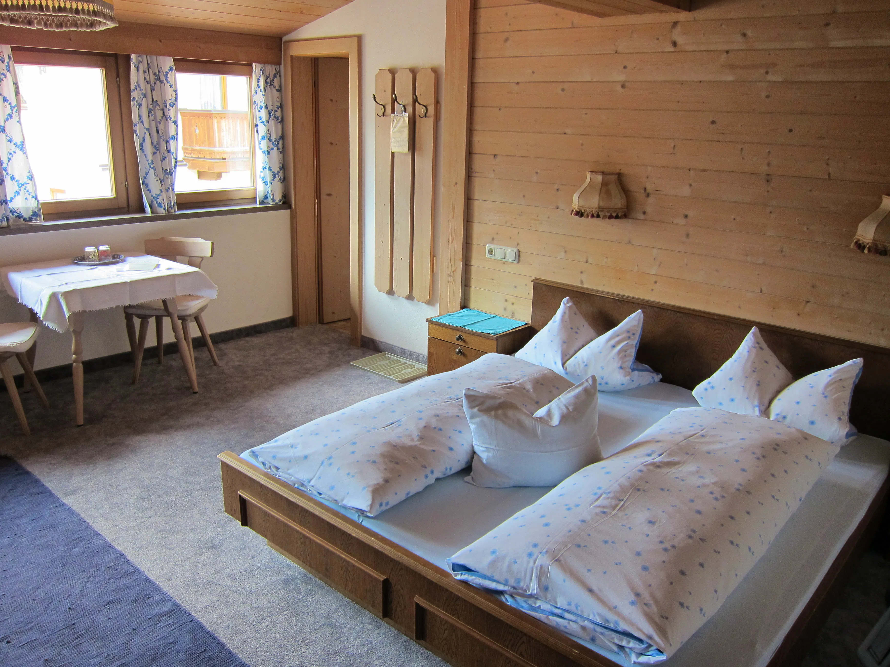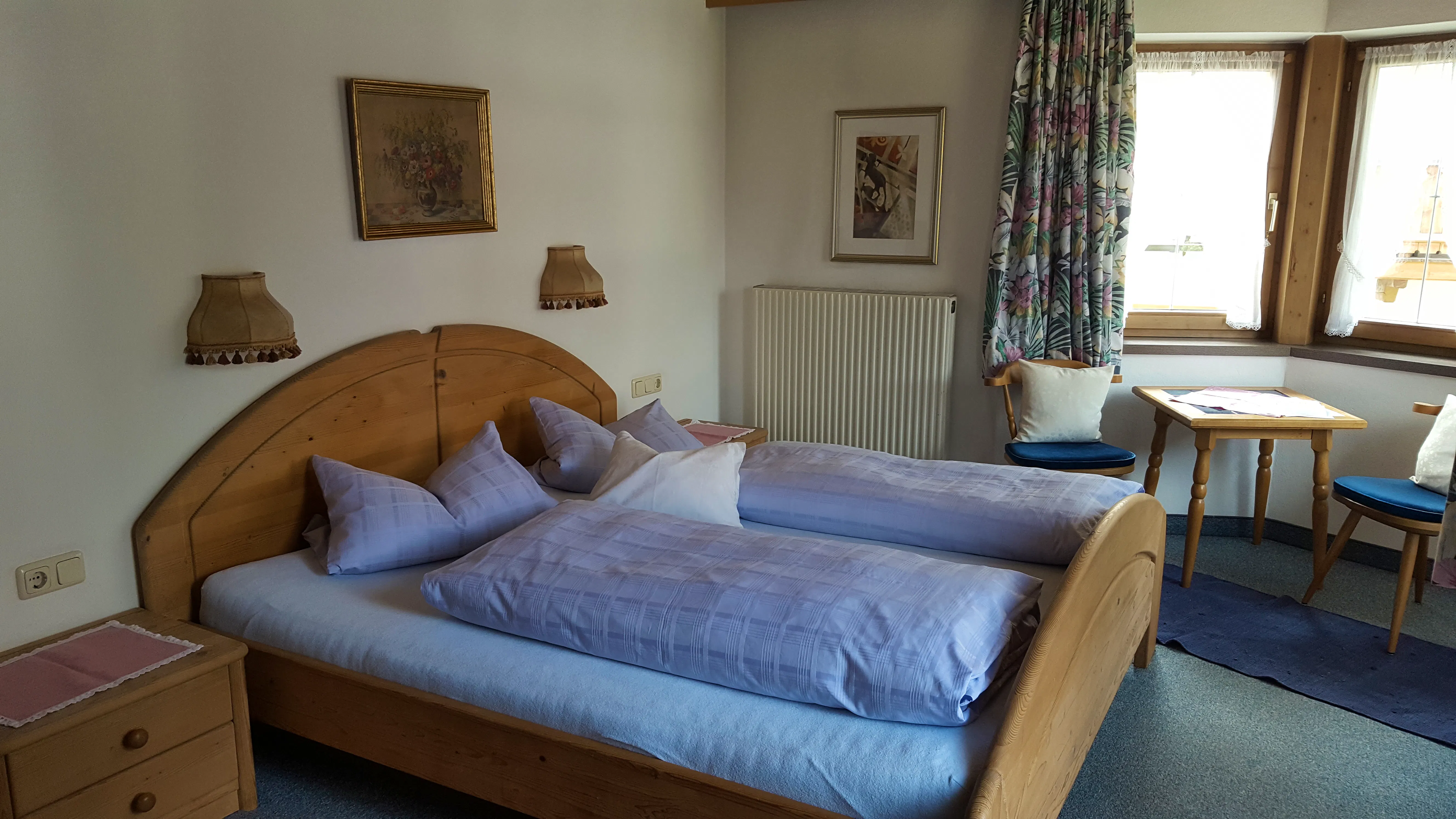 Die Doppelzimmer sind einfach ausgestattet und verfügen über SAT-TV, eine Dusche/WC und eine Sitzecke.