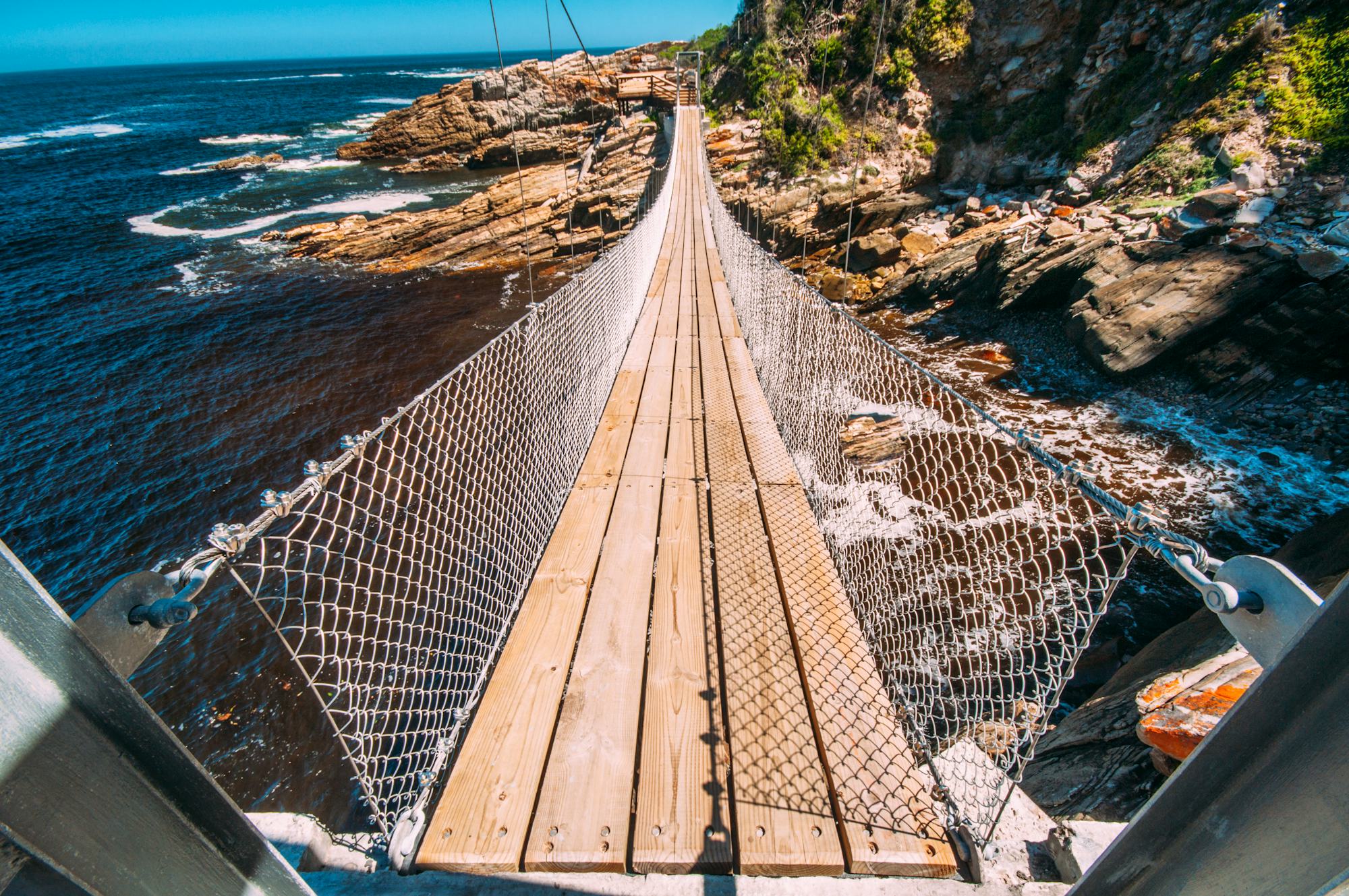 Auf dem Weg zum Tsitsikamma-Nationalpark überqueren Sie die legendäre Bluekrans Bridge. Bungee-Jumper aus aller Welt springen über 216 Meter in die tiefe Schlucht – Adrenalin pur, auch für den Fotografen. Im Tsitsikamma-Nationalpark wandern Sie durch ein kleines Stück Urwald des direkt am Meer liegenden Naturschutzgebietes. Der wildromantische Rundweg führt Sie zur Hängebrücke, wo der schwarze Storms River in den Indischen Ozean mündet. Hier haben Sie die Möglichkeit, einen Mittagsimbiss einzunehmen, bevor Sie die Fahrt zu Ihrem heutigen Ziel Gqeberha (Port Elizabeth) fortführen.