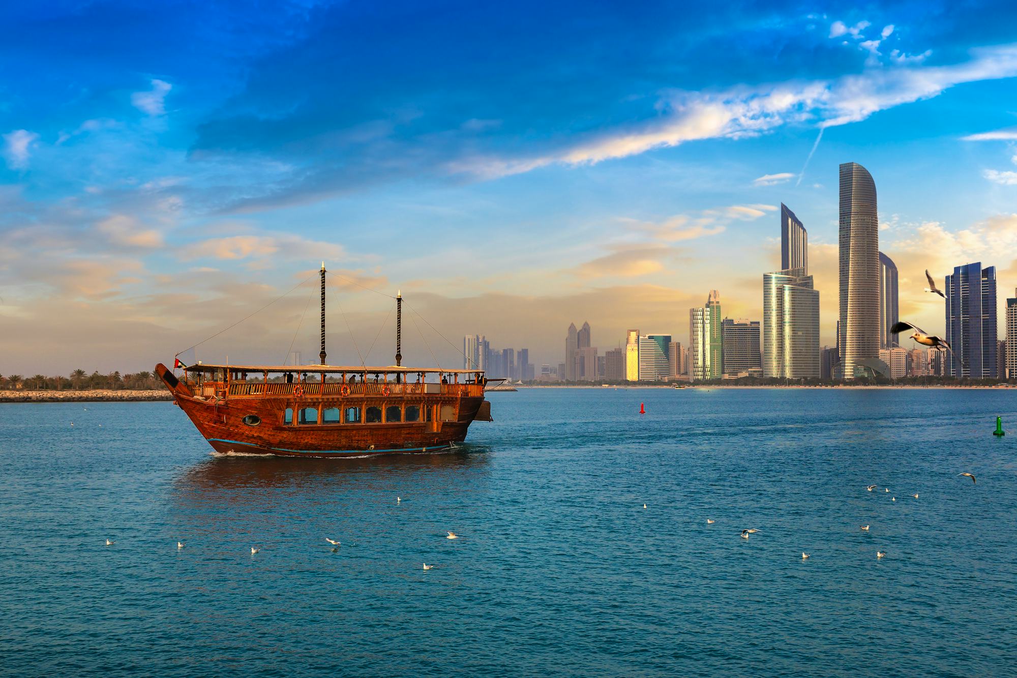 - Bootsfahrt mit einer traditionellen Dhau entlang der Skyline von Abu Dhabi inklusive Abendessen an Bord
