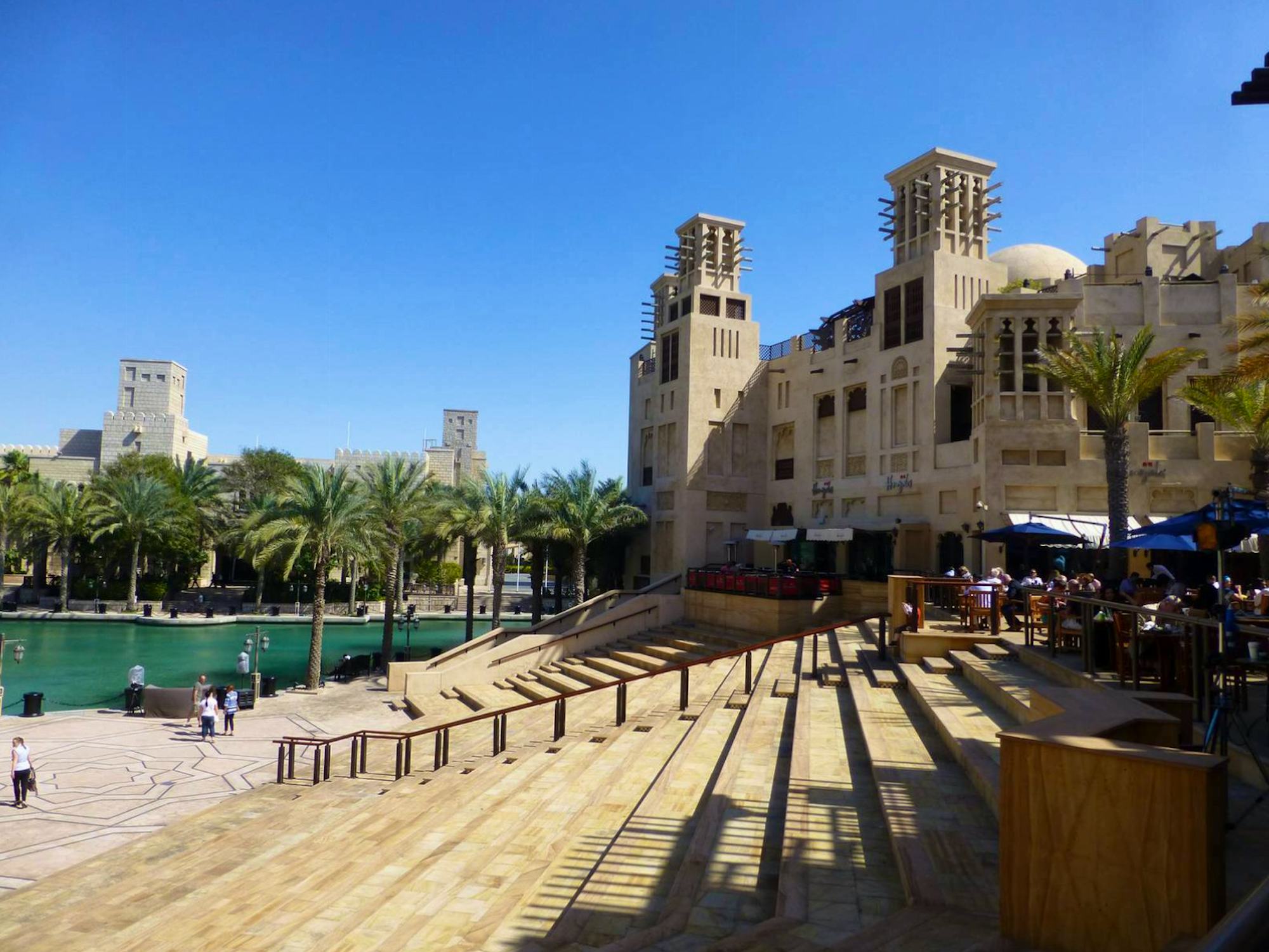 An den Ufern des Arabischen Golfs ist die Madinat Jumeirah, eine arabische Mini-Stadt mit Fünf-Sterne-Hotels, bunten Souks und Strandlokalen mitten in Dubai. Daneben gibt es ein fünf Kilometer langes Flusssystem mit einer eigenen Flotte von traditionellen emiratischen Holzbooten, den sogenannten Abras.