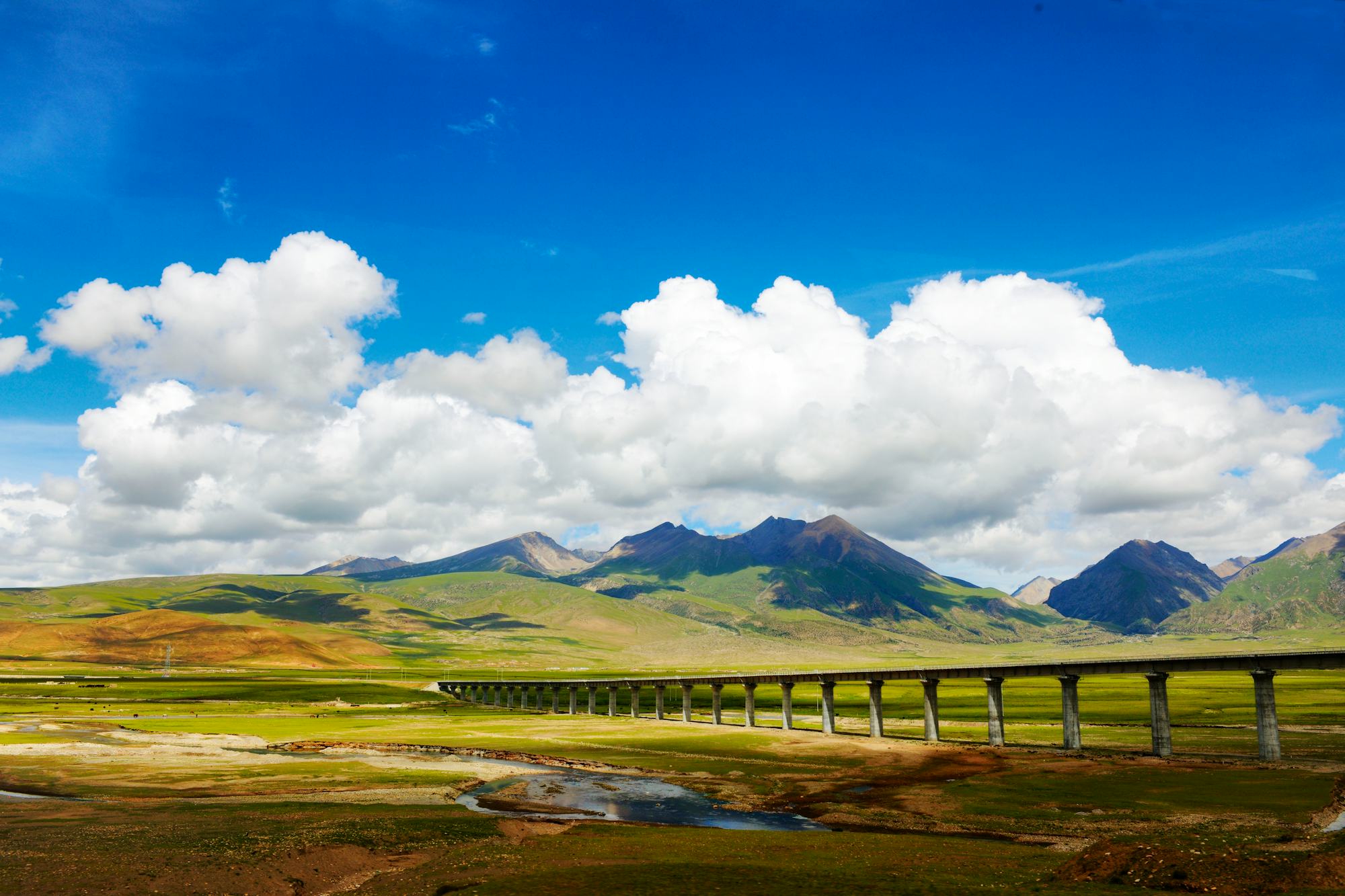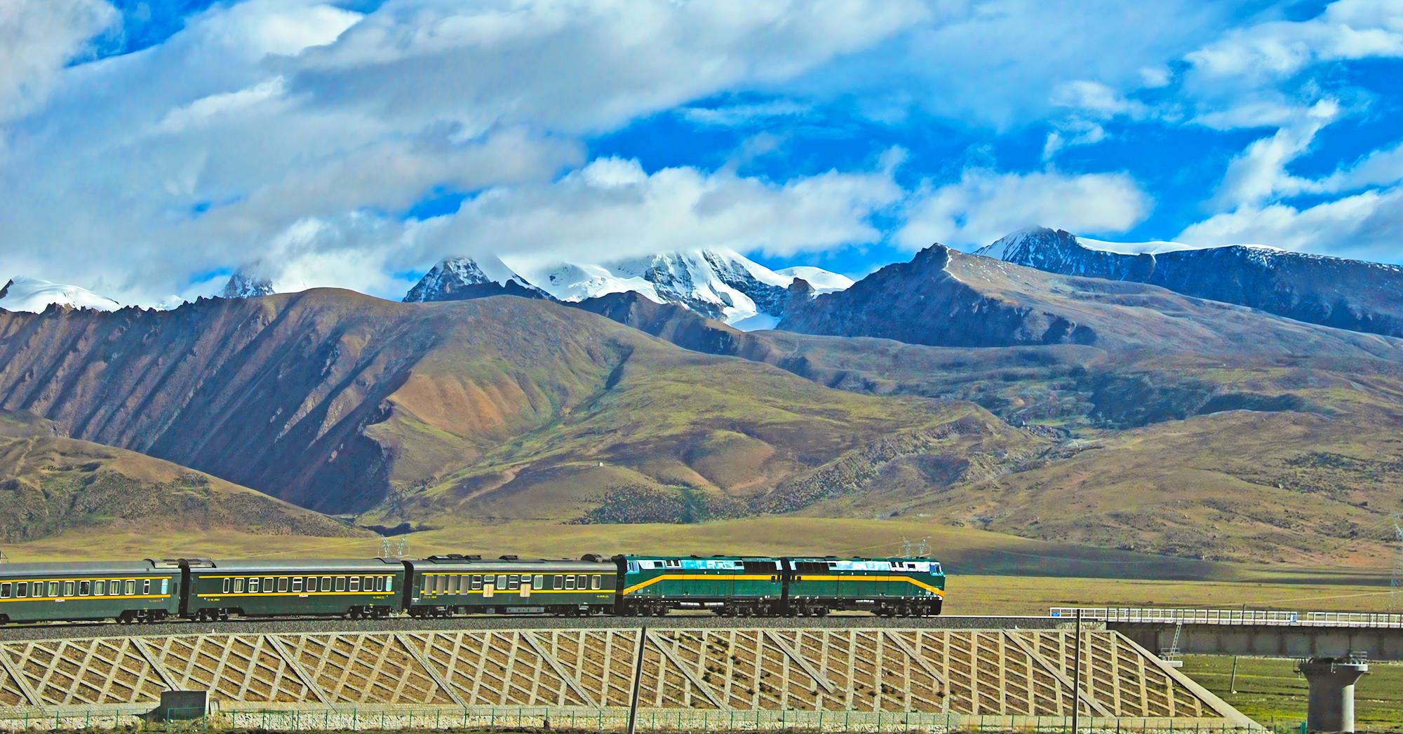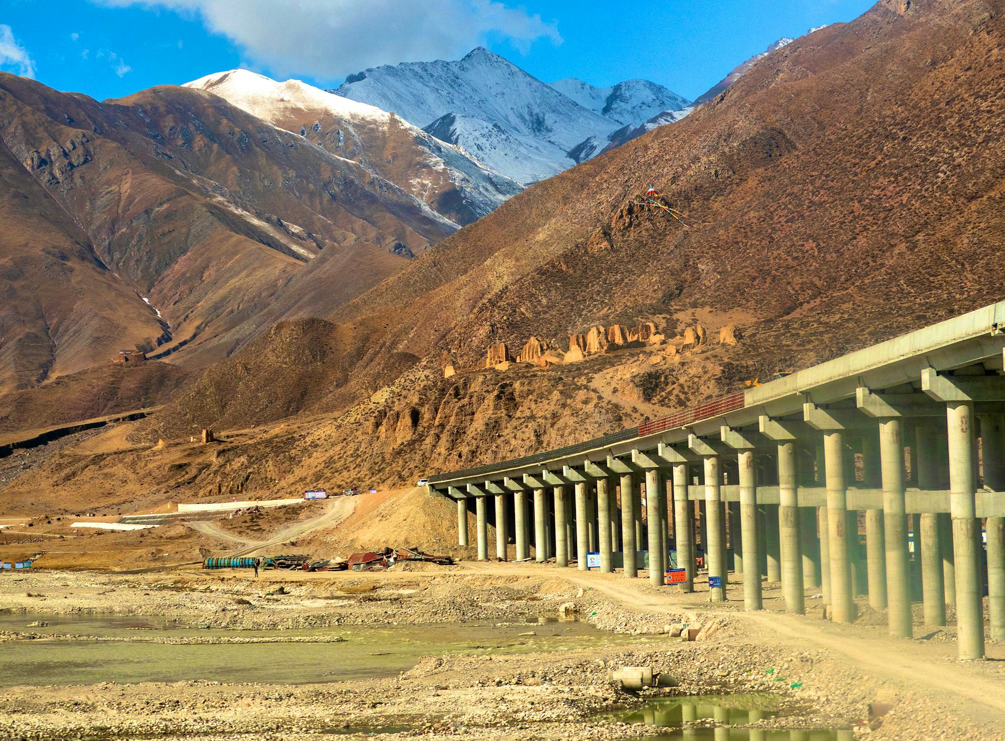 Die Tages-Etappe von Golmud nach Lhasa zählt zu den spektakulärsten und höchst gelegenen Bahnstrecken der Welt. Ein Großteil der Eisenbahnstrecke, die seit Sommer 2006 in Betrieb ist, wird von gigantischen Brückenpfeilern getragen, die schwindelerregende Ausblicke ermöglichen.