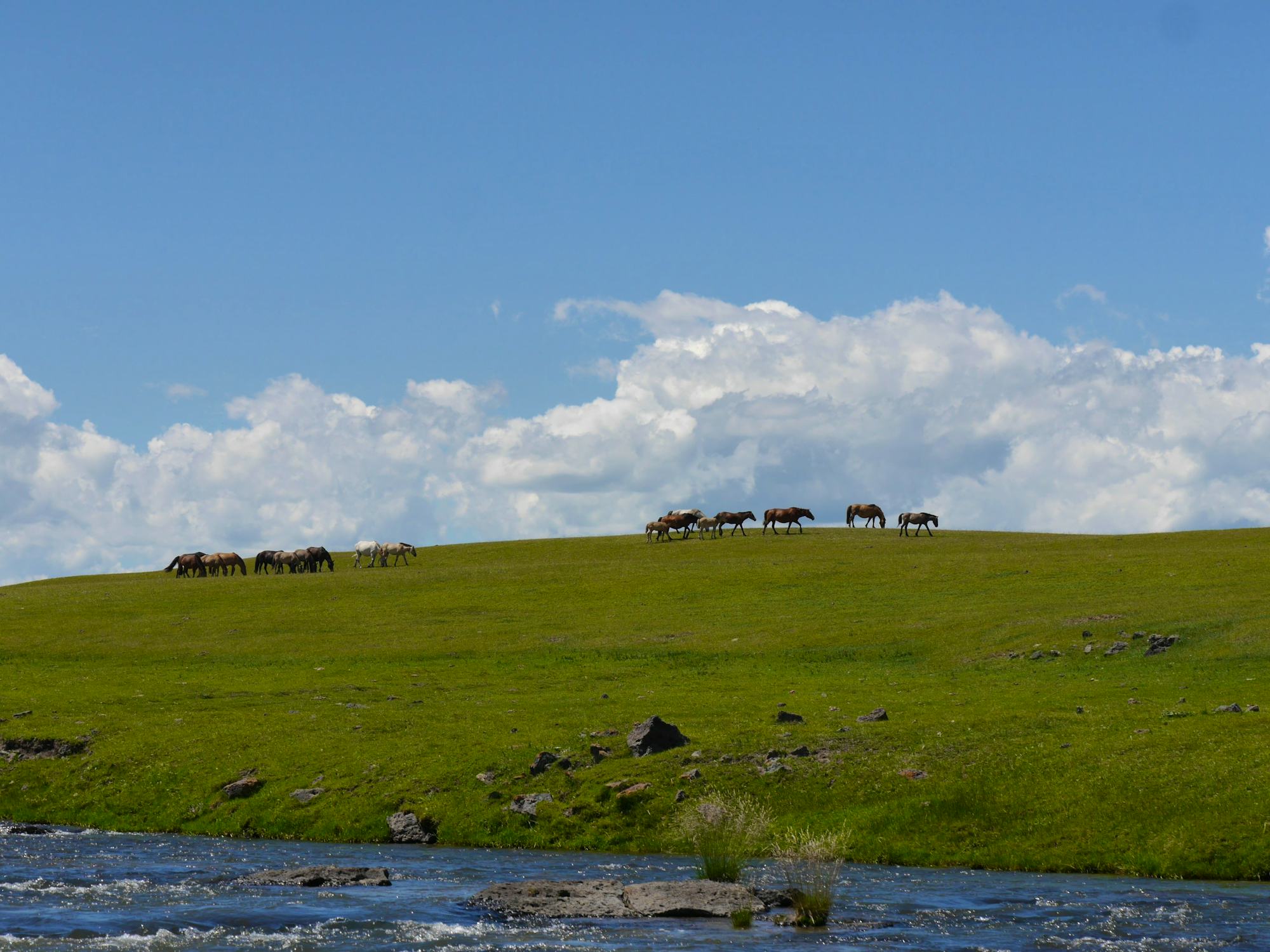 Nach dem Frühstück begeben Sie sich auf einen Ausflug zum Wasserfall Baga Zutgalan. Unterwegs haben Sie die Gelegenheit, ein Gräberfeld aus der Bronzezeit zu besichtigen. Es handelt sich dabei um die sogenannten Kamelsteine. Nach der Besichtigung des Gräberfeldes geht es weiter zum Wasserfall, wo Sie in der schönen Landschaft picknicken. Genießen Sie die Kühle des Flusses und den Ausblick über die schöne Landschaft. Am Nachmittag kehren Sie ins Camp zurück. Später besuchen Sie eine Nomadenfamilie und können traditionelle Milchprodukte verkosten. Probieren Sie auch die fermentierte Stutenmilch (Airag), eine Spezialität der Region!