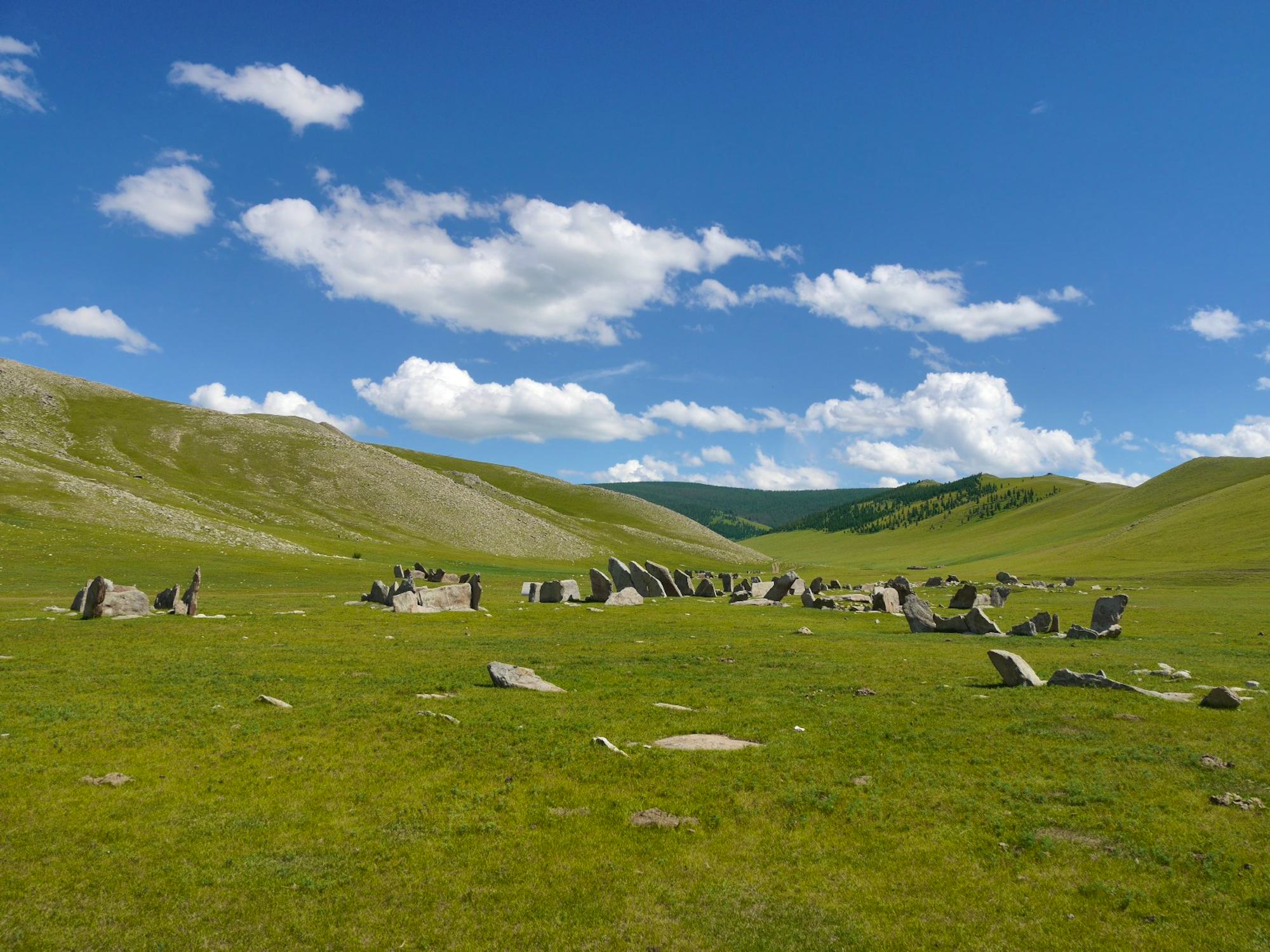 Heute kehren Sie wieder an den Fluss Orkhon zurück. Im mittleren Lauf des Flusses befinden sich die Überreste der frühmittelalterlichen Hauptstadt des Uigurenreichs, Karabagasun, die nur ca. 100 Jahre von 740 bis 840 bestand. Unter den Uiguren erlebte das Reich eine Blütezeit. Sie hatten die Türken als Herrscher der heutigen mongolischen Steppe abgelöst und pflegten enge Beziehungen zu China. Der Handel auf der Seidenstraße florierte, sodass sie am Orchon eine für damalige Verhältnisse riesige Hauptstadt errichten konnten. Heute sind einige Exponate einer mongolisch-deutschen Expedition im Orchon-Tal im Dschingis-Khan-Museum in Ulan Bator ausgestellt. Nach der Besichtigung der Ruinen und der ehemaligen Ausgrabungsstätten haben Sie die Möglichkeit, zur Ruine Naiman Talt zu wandern, die sich auf einem nahegelegenen Berg befindet. Von dort aus können Sie Ihren Blick über das weite Orchon-Tal schweifen lassen.
