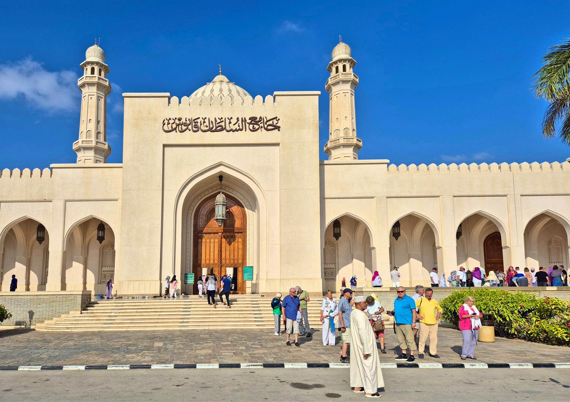 Sie fahren zunächst zur Großen Moschee von Sultan Qaboos. Das islamische Gotteshaus gilt als eines der größten und schönsten weltweit. Bestaunen Sie während der Innenbesichtigung die funkelnden Kronenleuchter, handgewebten Teppiche und die schönen Außenanlagen!