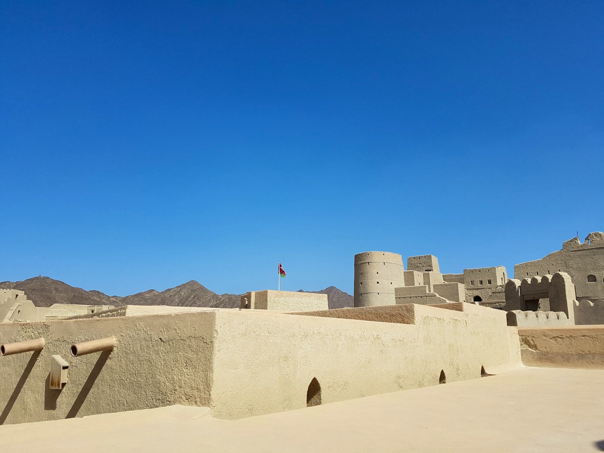 Direkt gegenüber liegt der prachtvolle Al-Alam-Palast, die zeremonielle Residenz seiner Majestät, Sultan Qabus von Oman. Auch wenn eine Innenbesichtigung nicht möglich ist, bietet sich hier ein perfekter Fotostopp vor der farbenfrohen Fassade des Palastes.