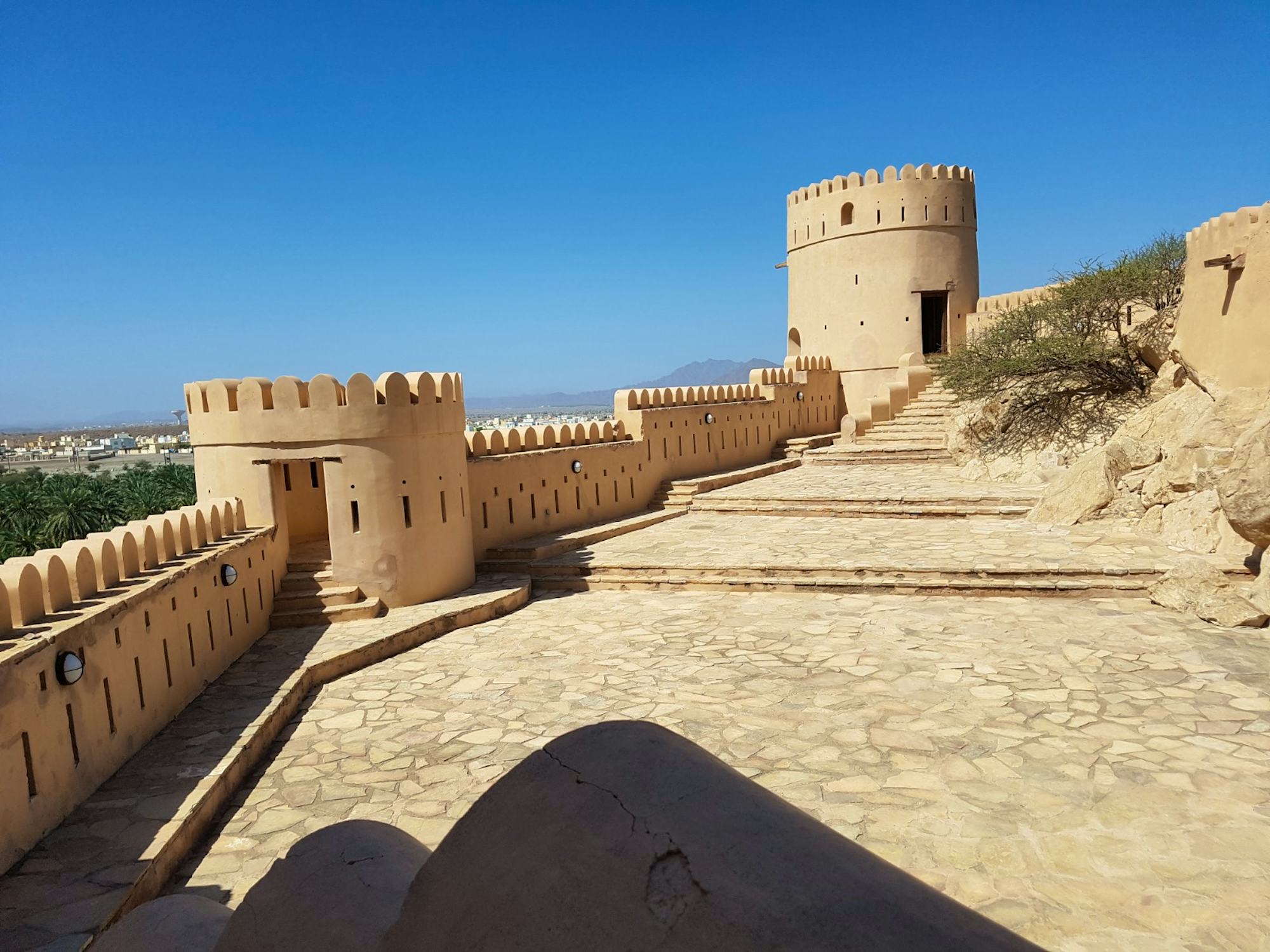 Anschließend fahren Sie durch die fruchtbare Batinah-Region nach Nakhl, wo Sie die beeindruckende Festung Nakhl erkunden. Erbaut vor der gewaltigen Kulisse des Jabal-Nakhl-Massivs, diente sie einst als Residenz der Imame und bietet von ihren Türmen aus ein spektakuläres Panorama über die grünen Dattelhainen und kargen Felsen.