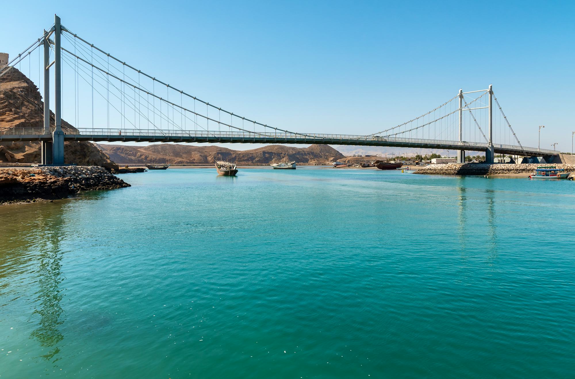 In der einst bedeutenden Hafenstadt Sur angekommen, wartet ein erfrischender Obstsaft auf der Ruaida Terrasse mit atemberaubendem Blick auf die Al-Ayjah-Bucht. Anschließend überqueren Sie die Khor al Batah-Hängebrücke, die zwei Stadtteile miteinander verbindet – mit etwas Glück entdecken Sie im Wasser eine Meeresschildkröte. Danach besuchen Sie die traditionelle Dhow-Werft, wo die berühmten omanischen Holzschiffe noch heute in reiner Handarbeit ohne Nägel und Leim gefertigt werden.