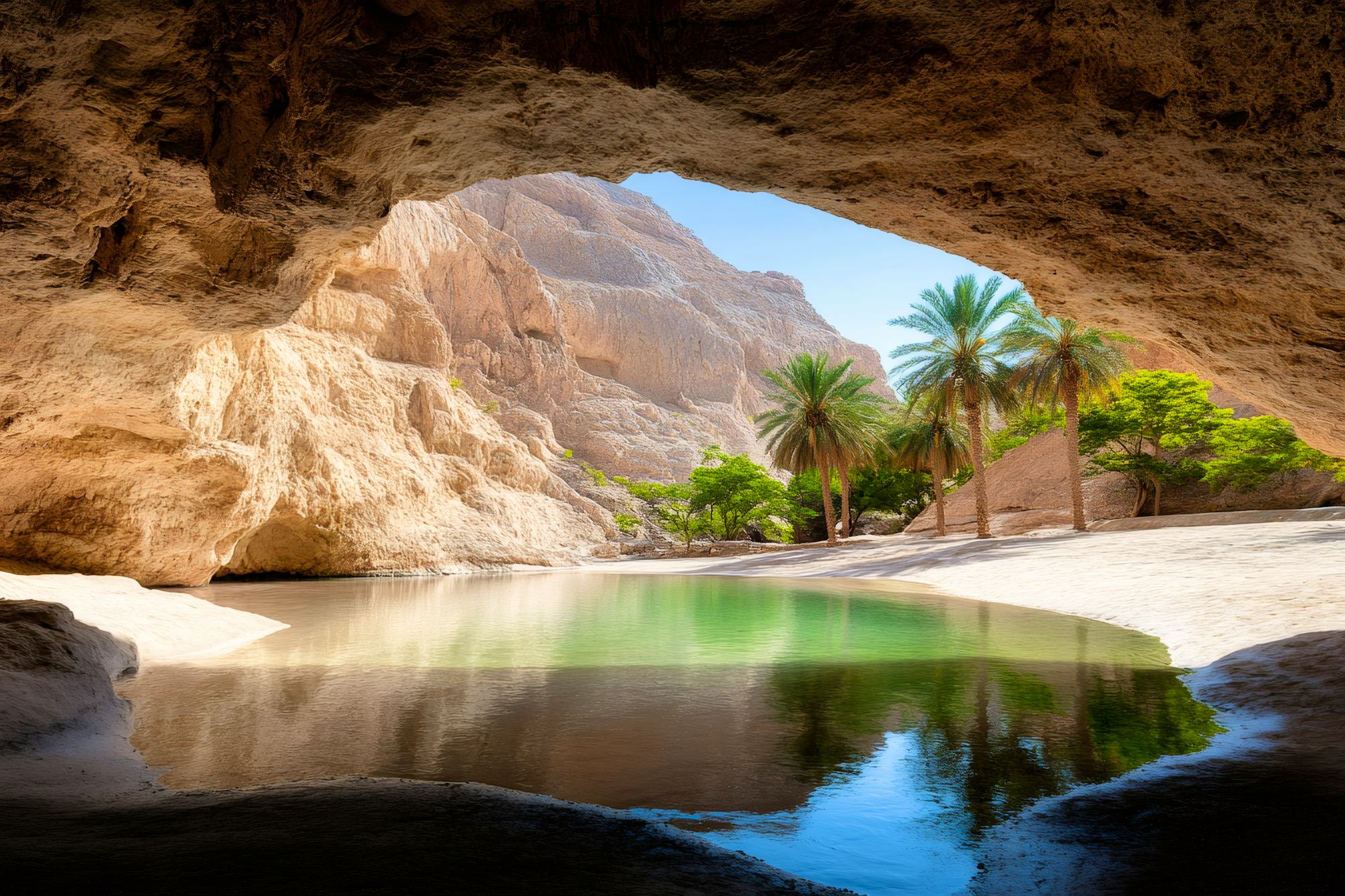 Am Morgen verlassen Sie die endlosen Dünen der Wahiba Sands und fahren entlang der kurvenreichen Küstenroute nach Sur. Der erste Stopp erwartet Sie im malerischen Wadi Bani Khalid, das mit seinen türkisblauen Wasserbecken und grünen Palmen zu einem erfrischenden Bad einlädt. Im Anschluss erkunden Sie die geheimnisvollen Höhlen von Kahf Maqal, genießen Sie dort eine entspannte Pause oder erleben Sie eine wohltuende Fischpediküre durch Putzerfische.