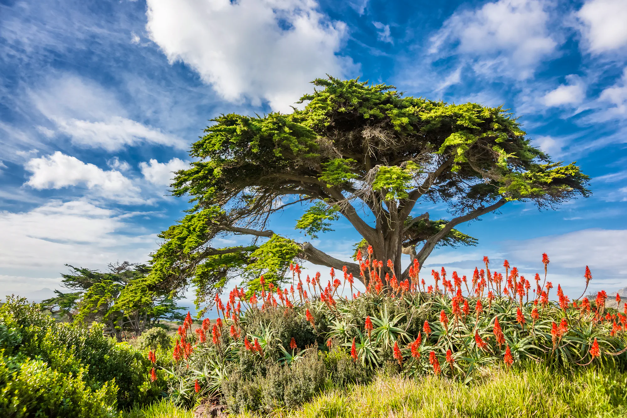 Heute haben Sie Zeit für ganz individuelle Entdeckungen in Kapstadt oder wir verführen Sie zu einem Ausflug auf die Kap-Halbinsel. Sie fahren über den spektakulären Chapman's Peak Drive, der hoch über dem Meer in Felsen geschlagen wurde. Diese Panoramastraße gehört zu den schönsten Straßen der Welt. Anschließend durchqueren Sie den Nationalpark Kap-Halbinsel mit seiner einzigartigen immergrünen Pflanzenpracht, die je nach Jahreszeit ihre Farben wechselt. Diese Vegetation wird als Fynbos bezeichnet und besteht vorwiegend aus Proteen und Ericen. Das Ende der Kap-Halbinsel besteht eigentlich aus zwei Kapspitzen. Das Cape Point mit dem Leuchtturm, der auf dem Berg 250 Meter über dem Meeresspiegel aufragt, erreichen Sie mit einer Zahnradbahn. Vom Cape Point fahren Sie anschließend bis zum berühmten Schild mit der Angabe des Längen- und Breitengrades.