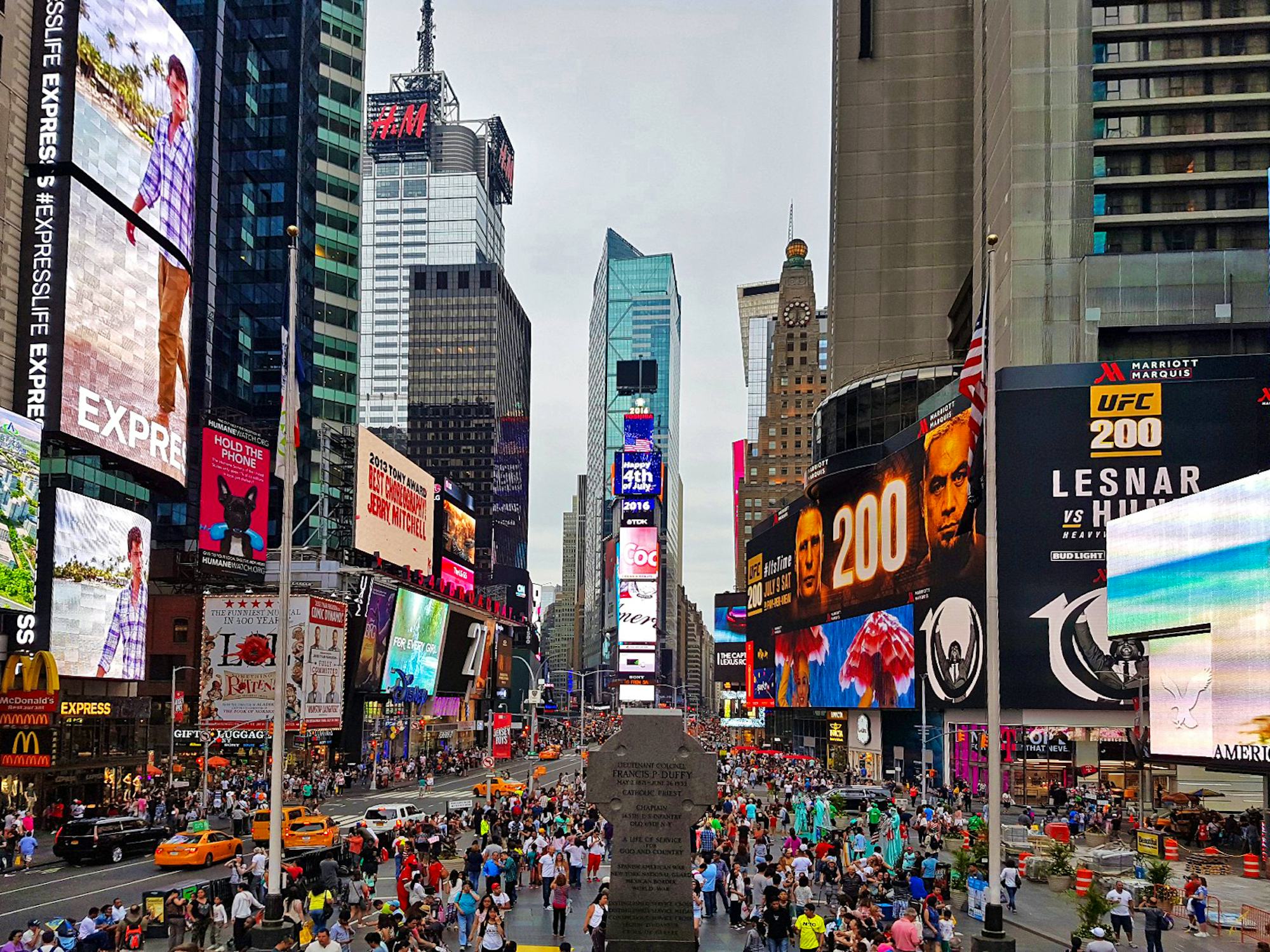 Am späten Nachmittag erreichen Sie Ihr zentral gelegenes Hotel mitten in Manhattan. Bei einem ersten Spaziergang entdecken Sie die Hotelumgebung und können so die ersten Eindrücke der Städtereise auf sich wirken lassen. Hierbei darf der hell erleuchtete Times Square, der direkt um die Ecke liegt, natürlich nicht fehlen! Bestaunen Sie die berühmten Leuchtreklamen und freuen Sie sich auf die bunte Lichterwelt, welche Sie umgibt. Ihr Abendessen nehmen Sie im berühmten Hard Rock Café am Times Square ein. Die eigentliche Bar hat ein Gitarren-Design und Sie finden hier viele Rock'n Roll Erinnerungsstücke und Fotos. Die Speisekarte ist bekannt für ihre Burger, Steaks, Sandwiches und leckeren Desserts.