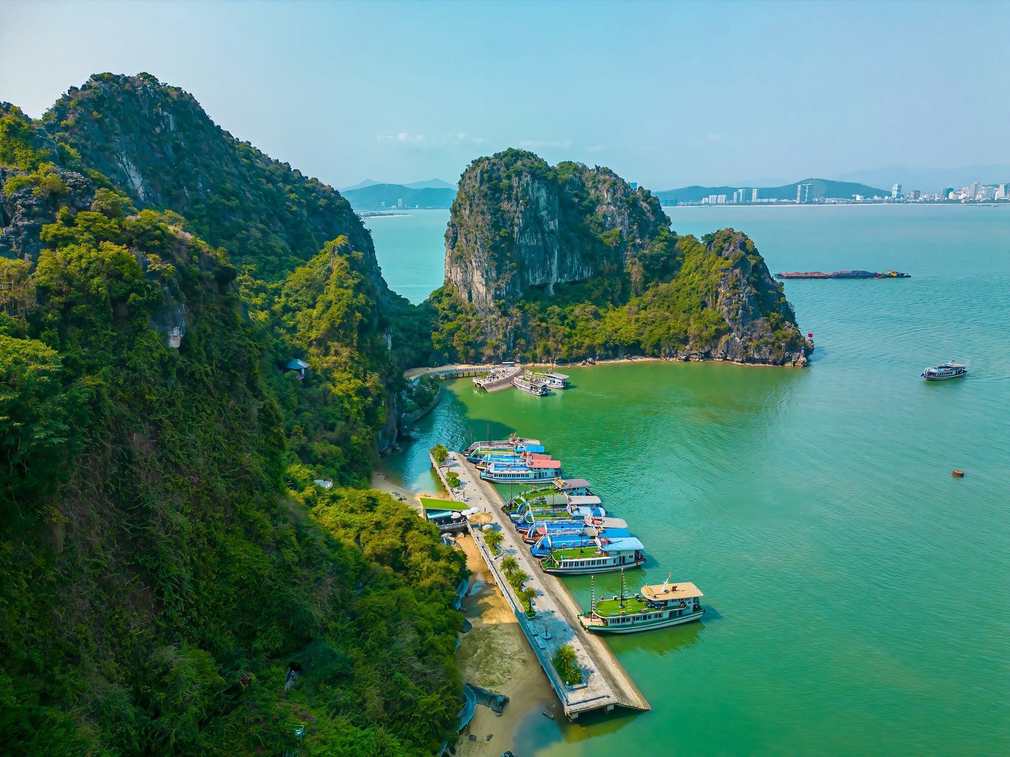 Sie fahren entlang der Ha-Long Bucht und bestaunen während der Fahrt die Kalksteininseln, kleine Strände und schwimmende Dörfer.