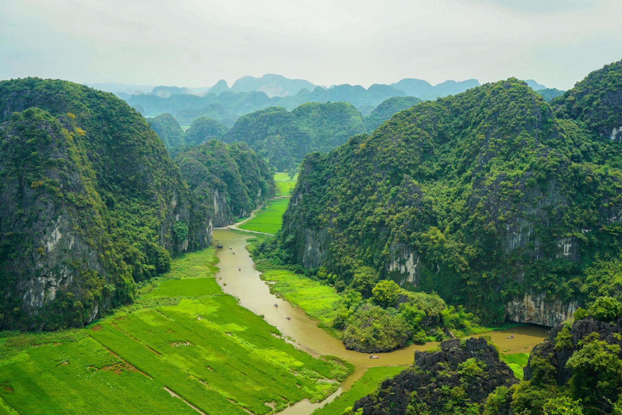 Die Region Ninh Binh wurde 2014 von der UNESCO zum Weltkulturerbe erklärt. Sie beherbergt weite grüne Täler, erstaunliche Karstberge, nebelverhangene Höhlen und historische Relikte - die Region wird auch die trockene Bucht von Halong (Ha Long) genannt.