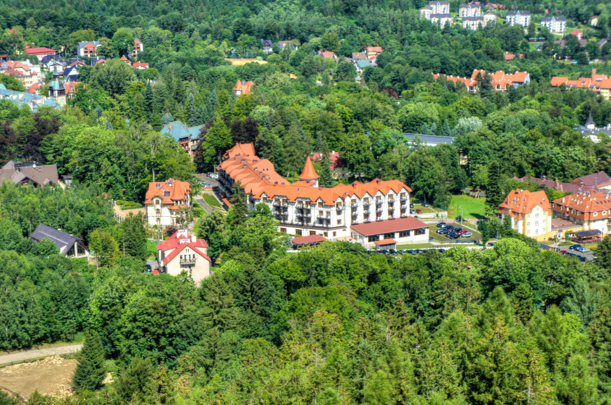 Das Kurhotel St. Lukas liegt zentral und ruhig am oberen Rand des Ortszentrums von Bad Flinsberg (Swieradow Zdroj).