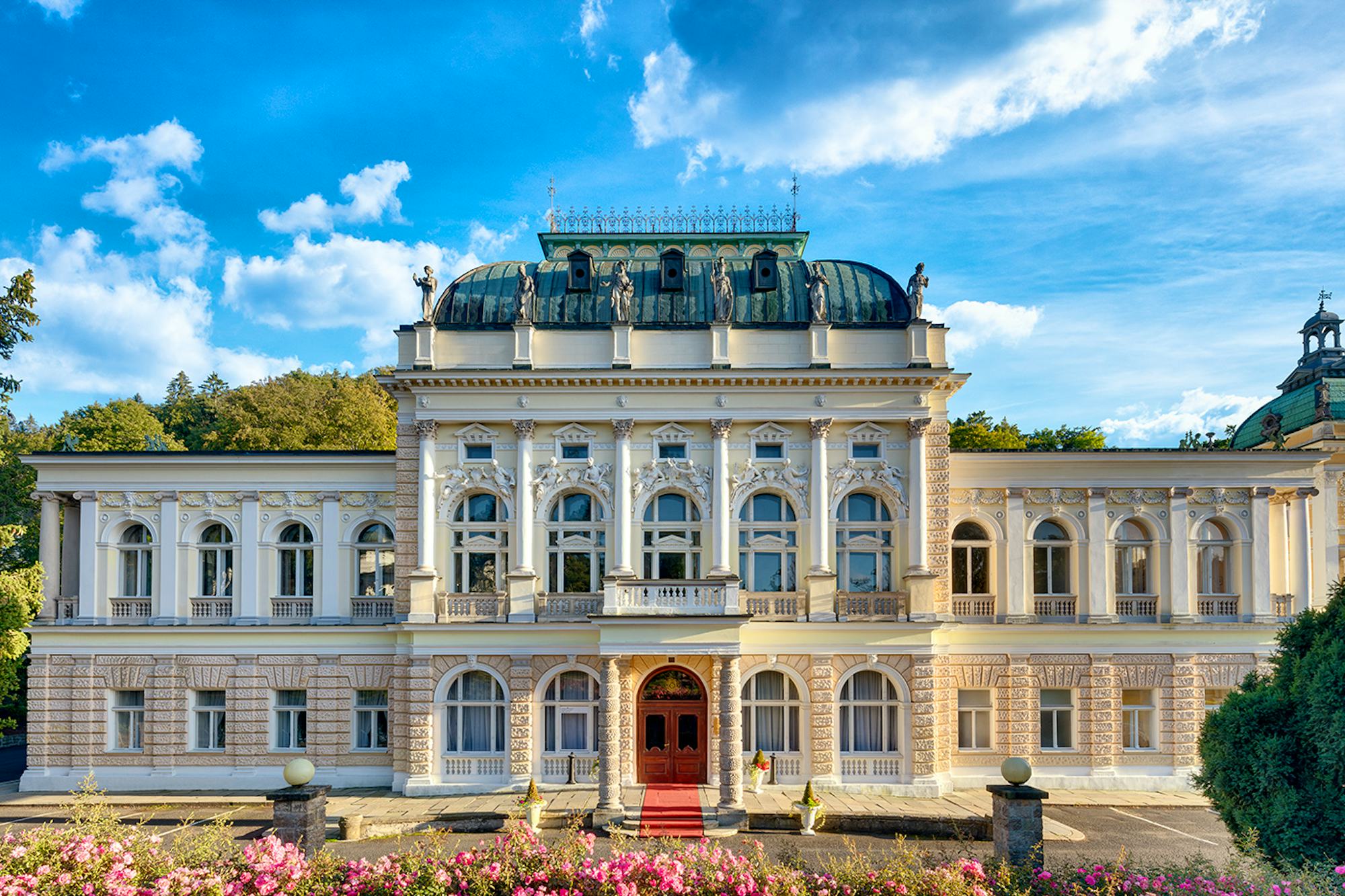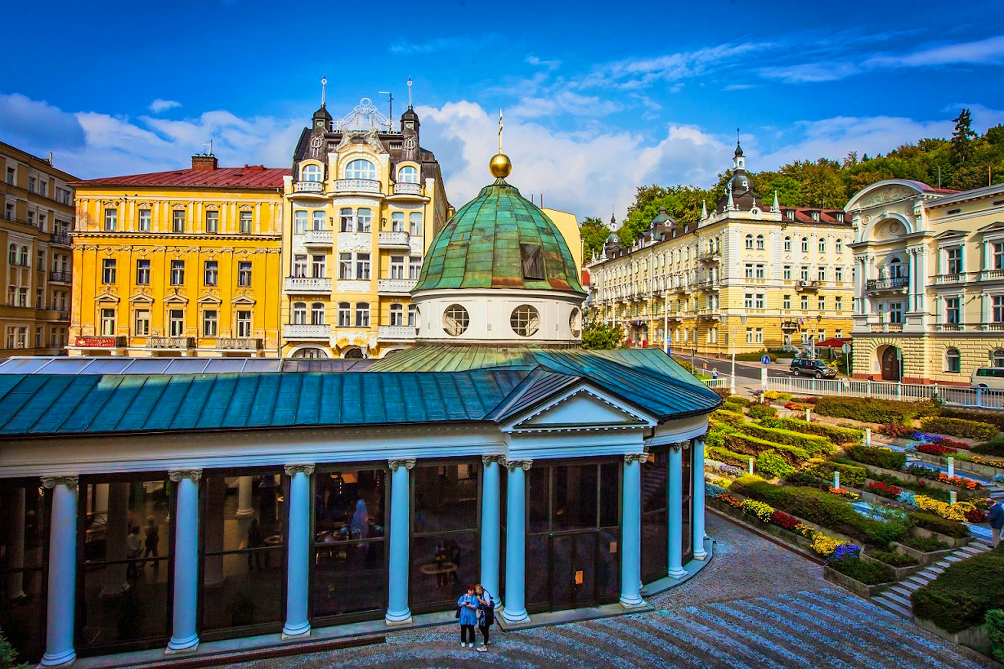 Neben Ihren Anwendungen lädt Marienbad zu entspannten Spaziergängen ein. Der traditionsreiche Kurort, Teil der UNESCO-Welterbestätte „Great Spa Towns of Europe“, zählt zu den schönsten Städten Westböhmens. Flanieren Sie entlang der prachtvollen Kolonnade, kosten Sie das berühmte Quellwasser und die traditionellen Oblaten oder lassen Sie sich vom Zauber der Singenden Fontäne mitreißen.