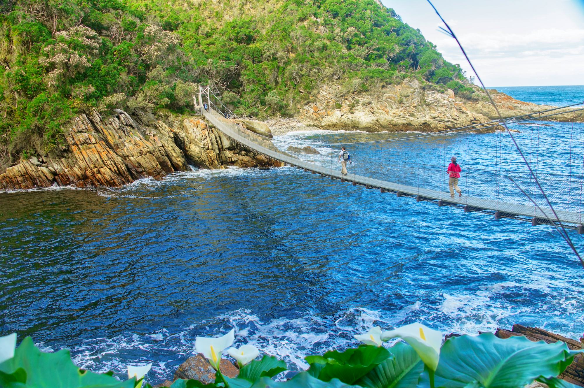 Der Tsitsikamma Nationalpark mit einer Fläche von 29.838 Hektar wurde 1964 eröffnet und erstreckt sich über fast 100 Kilometer entlang der Küste zwischen Kap St. Francis und Plettenberg Bay. Er umfasst nicht nur den Urwald an Land, sondern auch einen 5,5 Kilometer breiten Streifen des küstennahen Meeres. Der dichte Wald mit seinen alten, bis zu 40 Meter hohen Bäumen ist einer der letzten Urwälder Südafrikas. Des Weiteren gibt es eine artenreiche Vogelwelt, Affen und kleinere Antilopenarten. Vor der Küste sieht man häufig Delfine und Wale. Im Naturschutzgebiet unternehmen Sie eine kleine Wanderung (ca. 3 km) auf dem gut befestigten Rundweg bis zur Mündung des Storms River in den Indischen Ozean.
