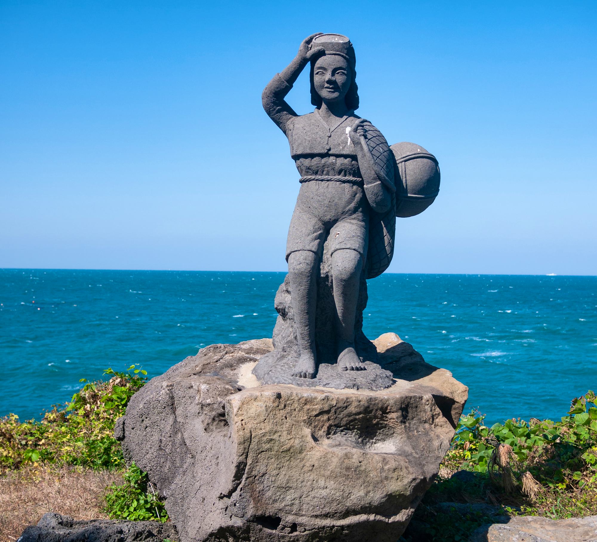 Auf Jeju begegnen Ihnen auch immer wieder die Dol Hareubang-Statuen, die auch als "Großväter-Steine" oder "Jeju-Steingötter" bezeichnet werden. Diese Statuen aus vulkanischem Basaltgestein gelten als Fruchtbarkeitssymbole und Schutzpatron vor bösen Geistern. Sie sind beliebte Fotomotive und Souvenirs auf der Insel Jeju.