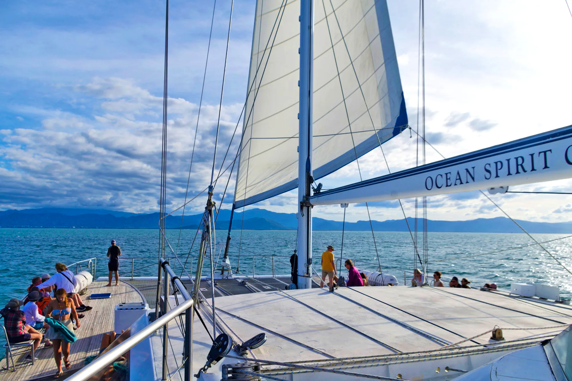 - Ganztagesausflug mit dem Katamaran Ocean Spirit ab Cairns ins Great Barrier Reef zur Sandinsel "Michaelmas Cay" mit Möglichkeit zur Korallenbeobachtung mit einem Glasbodenboot/Semi-Sub und Schnorcheln inkl. Mittagessen