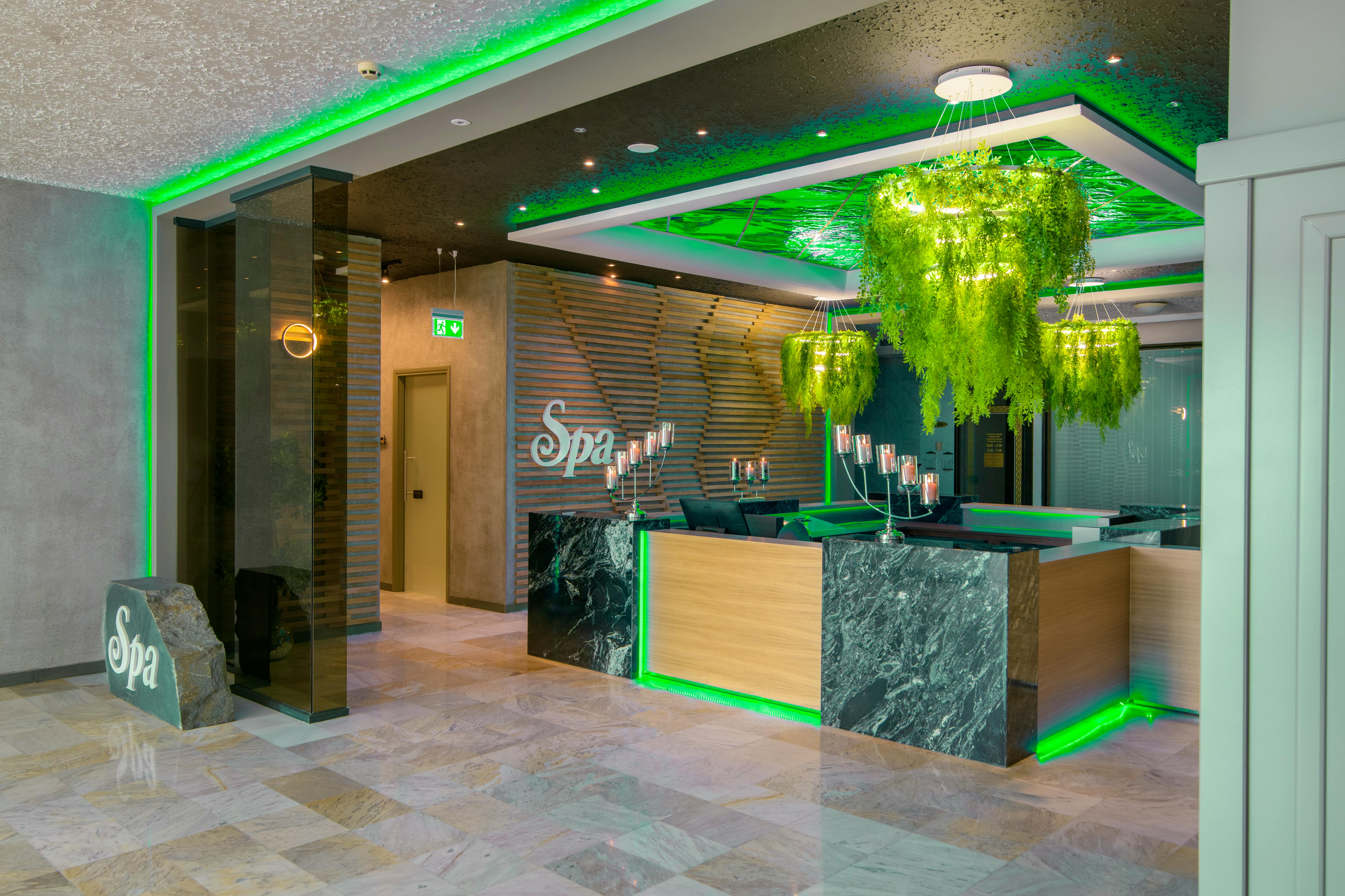 Den Gäste steht der Thermalbereich mit Kräuter- und klassische Sauna, Dampfbad, Kaltwasserbecken, Eisbrunnen, Salzraum, Aquatonikbecken