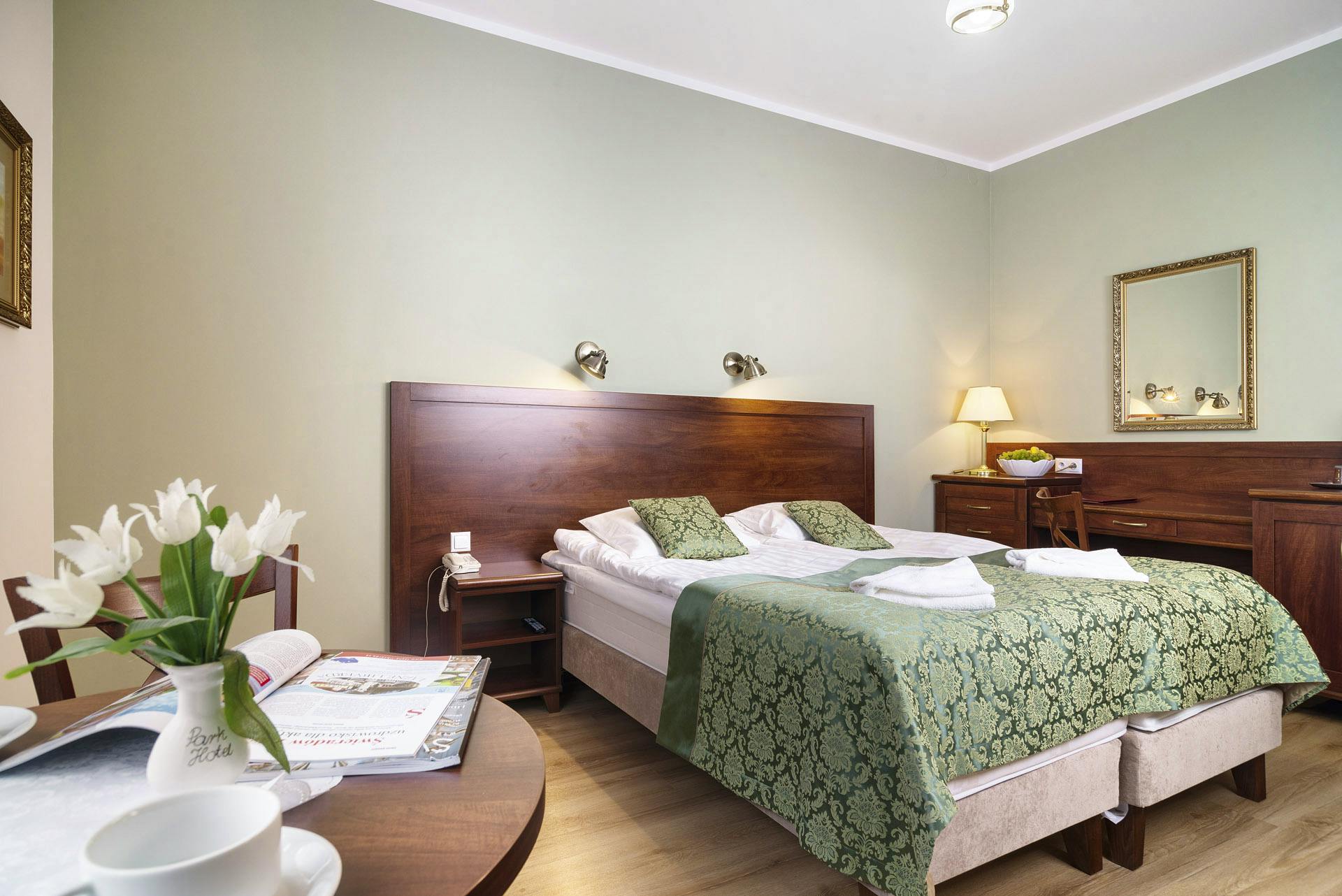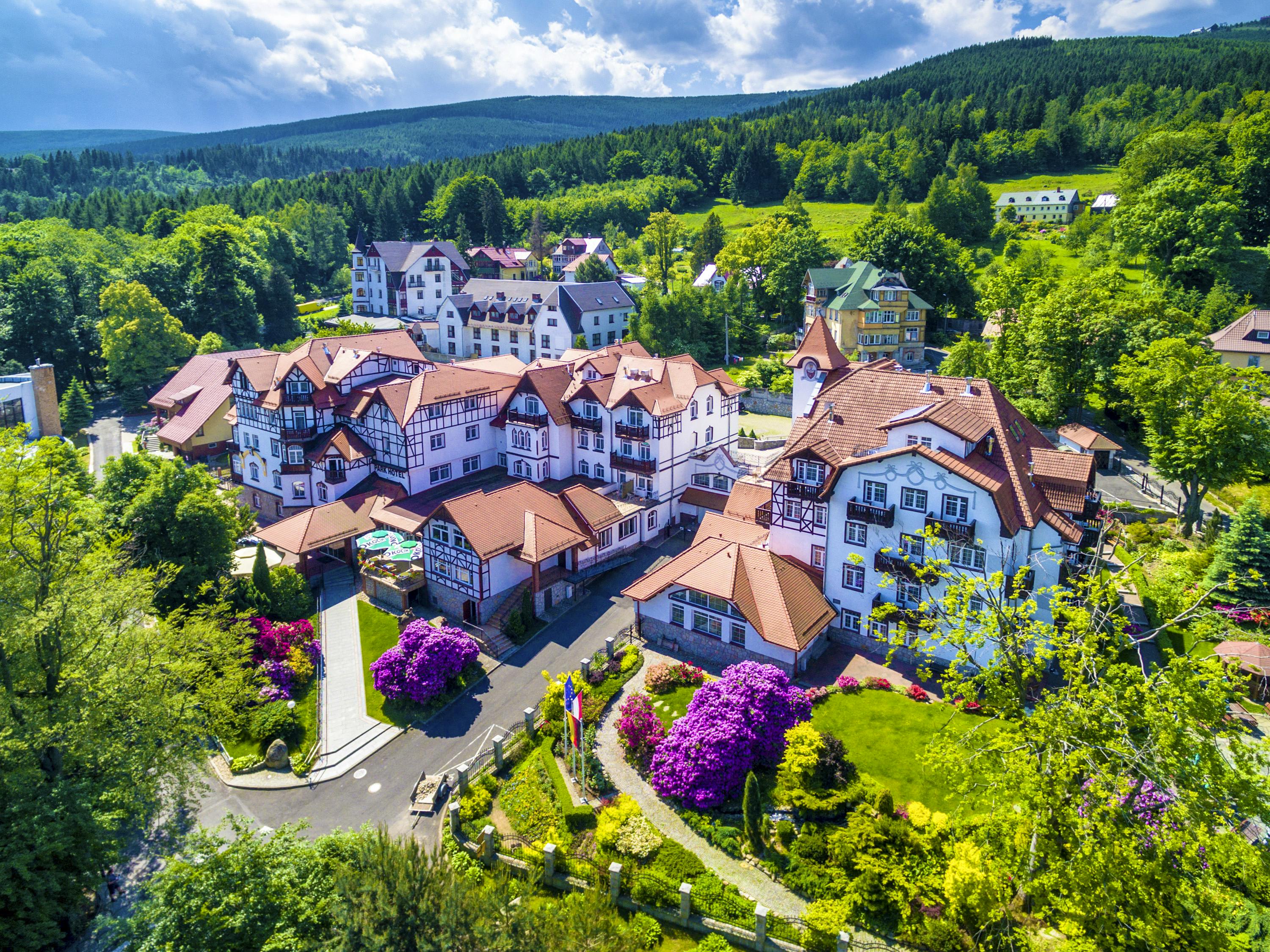 Panoramaansicht Park Hotel – © Park Hotel Park Hotel Flinsberg - Luftaufnahme des Geländes – © Park Hotel Bad Flinsberg Park Hotel Flinsberg - Zimmerbeispiel – © Park Hotel Bad Flinsberg Park Hotel Bad Flinsberg Pool – © eb Park Hotel Bad Flinsberg - Restaurant – © Park Hotel Bad Flinsberg