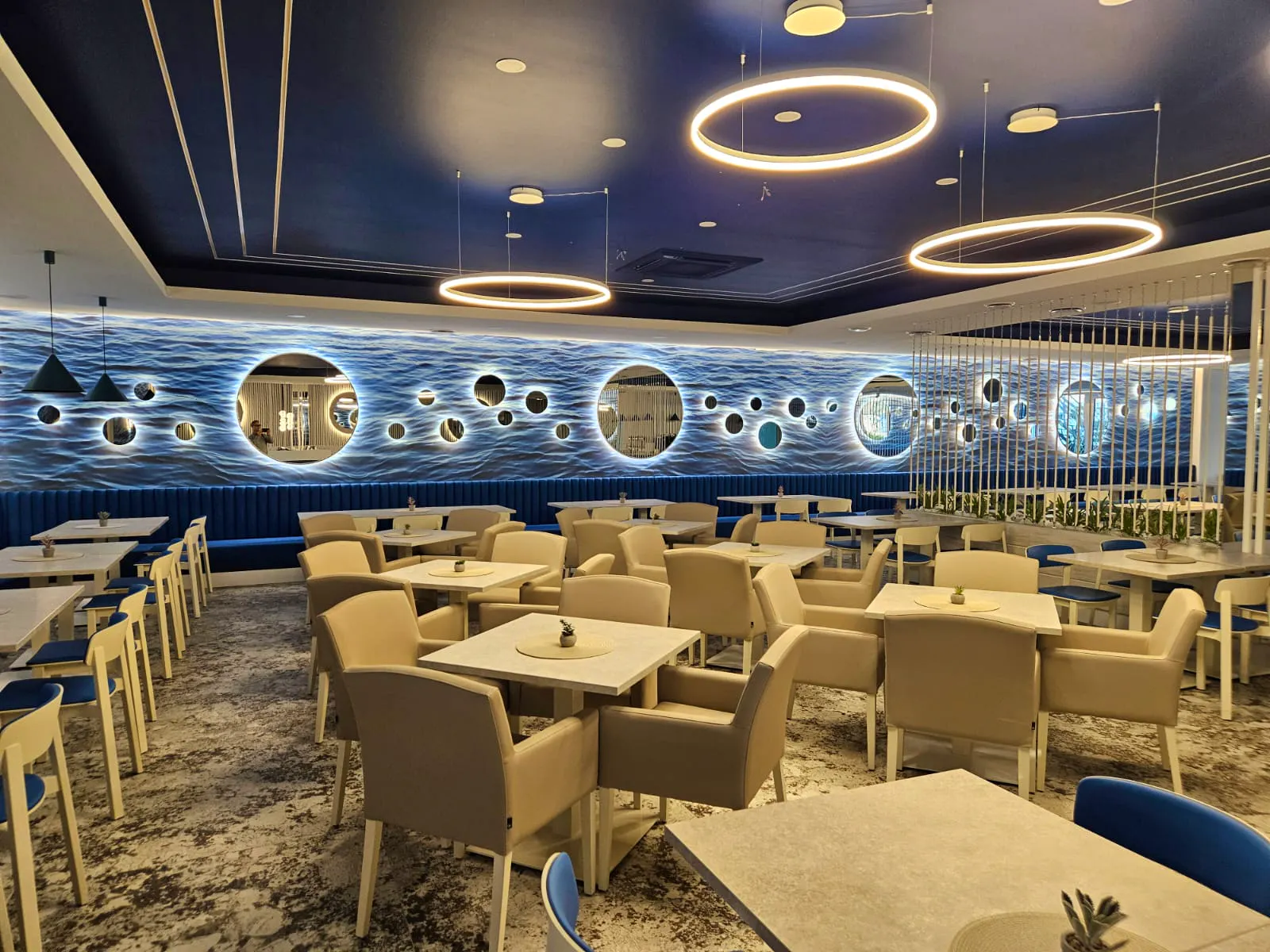 Der Wellnessbereich des Hotels umfasst zwei Hallenbäder (12 x 5 m und 10 x 6 m) mit Kinderbecken, zwei Whirlpools, eine Sauna, einen Fitnessraum und ein Solarium (gegen Gebühr).