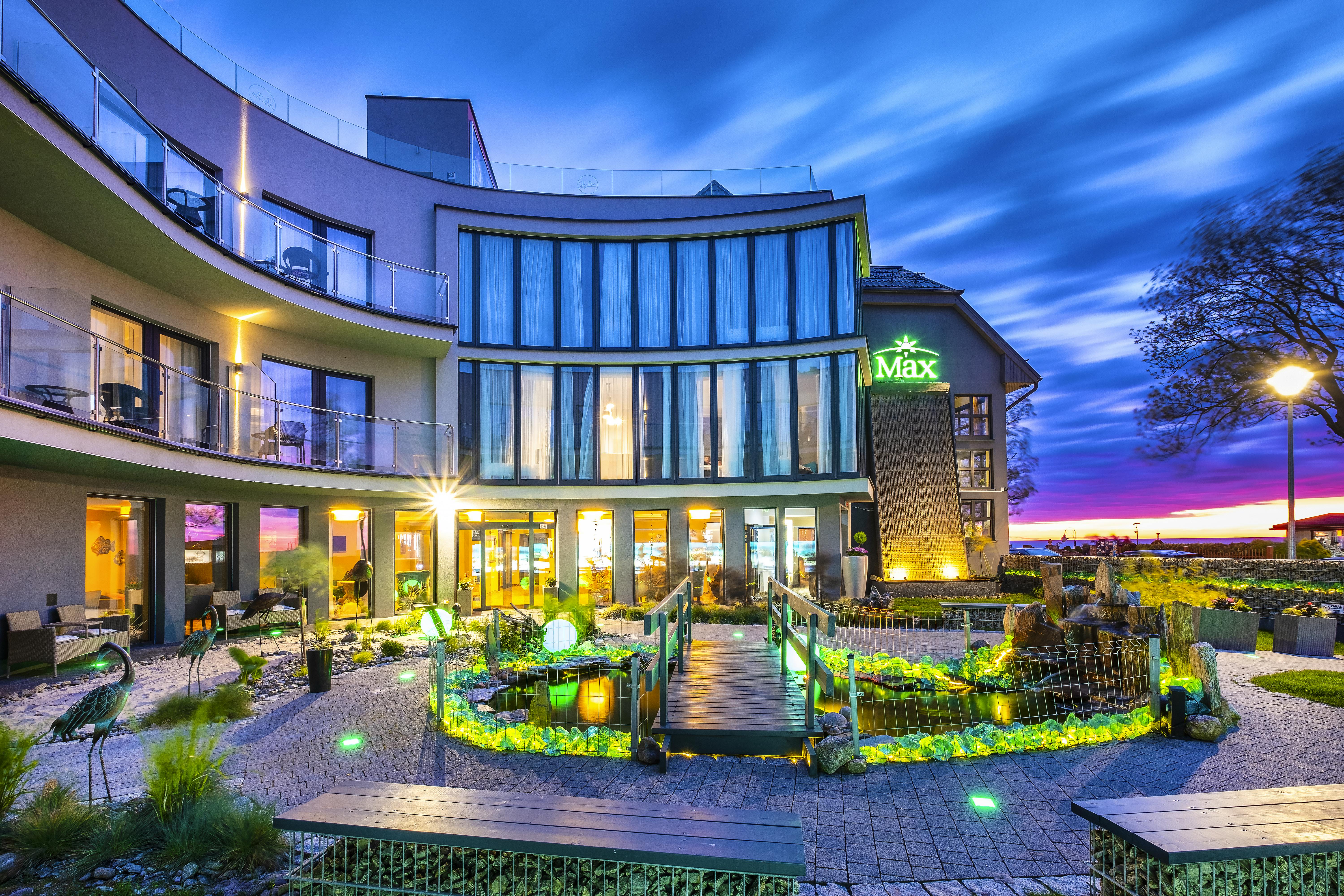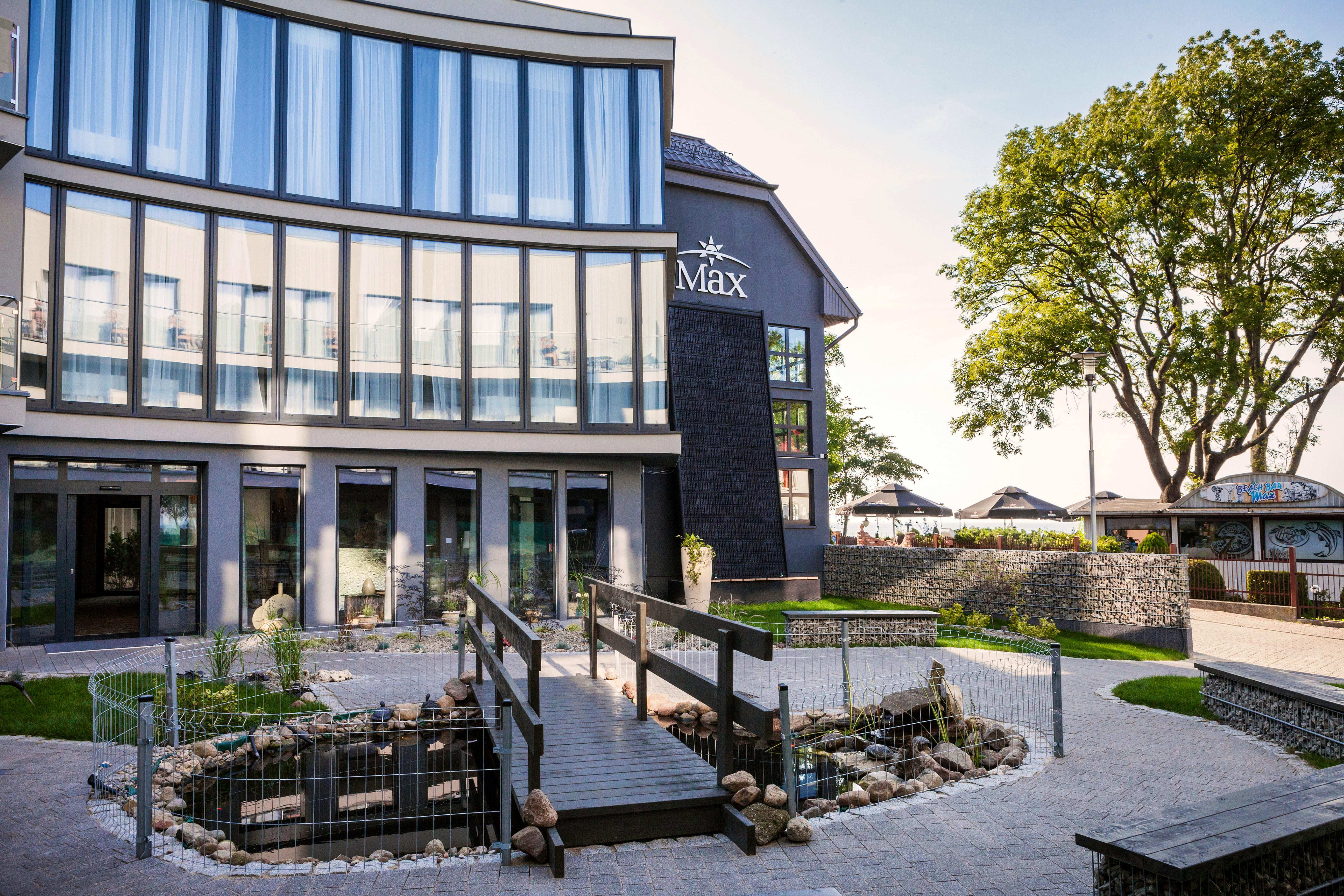 Das familiäre Max Health Resort Spa besteht aus zwei Gebäudeteilen, einem neuen und einem alten Gebäudeteil. Beide Gebäude verfügen über einen Lift, die Zimmer im neuen Gebäudeteil sind alle mit dem Lift erreichbar. Zimmer im alten Gebäudeteil bis in die 2. Etage mit Lift erreichbar. Das Hotel verfügt über einen Speiseraum, Café/Bar im maritimen Stil, Beautysalon, Dachterrasse mit Meerblick und Sommergarten mit Grillplatz.