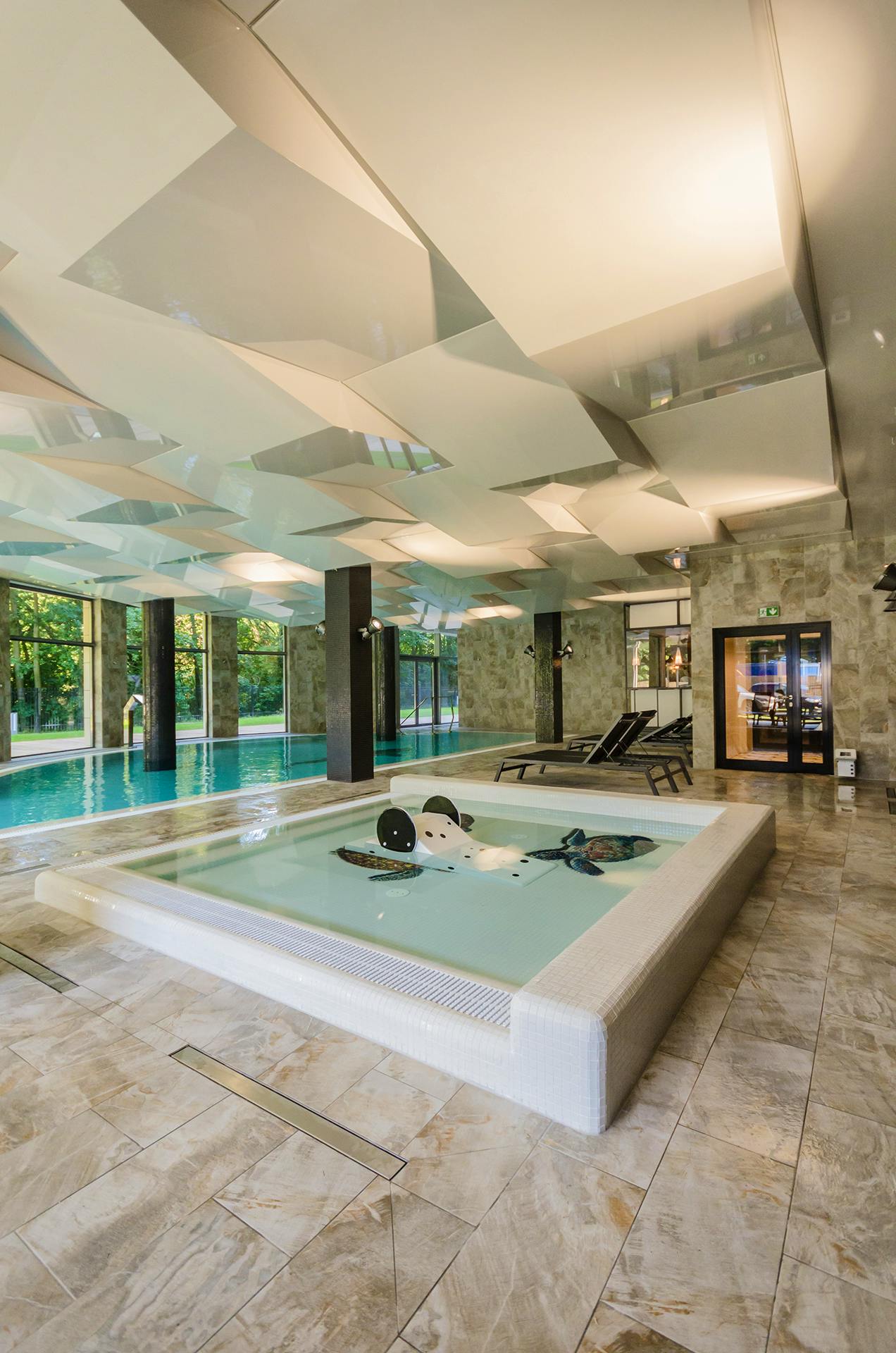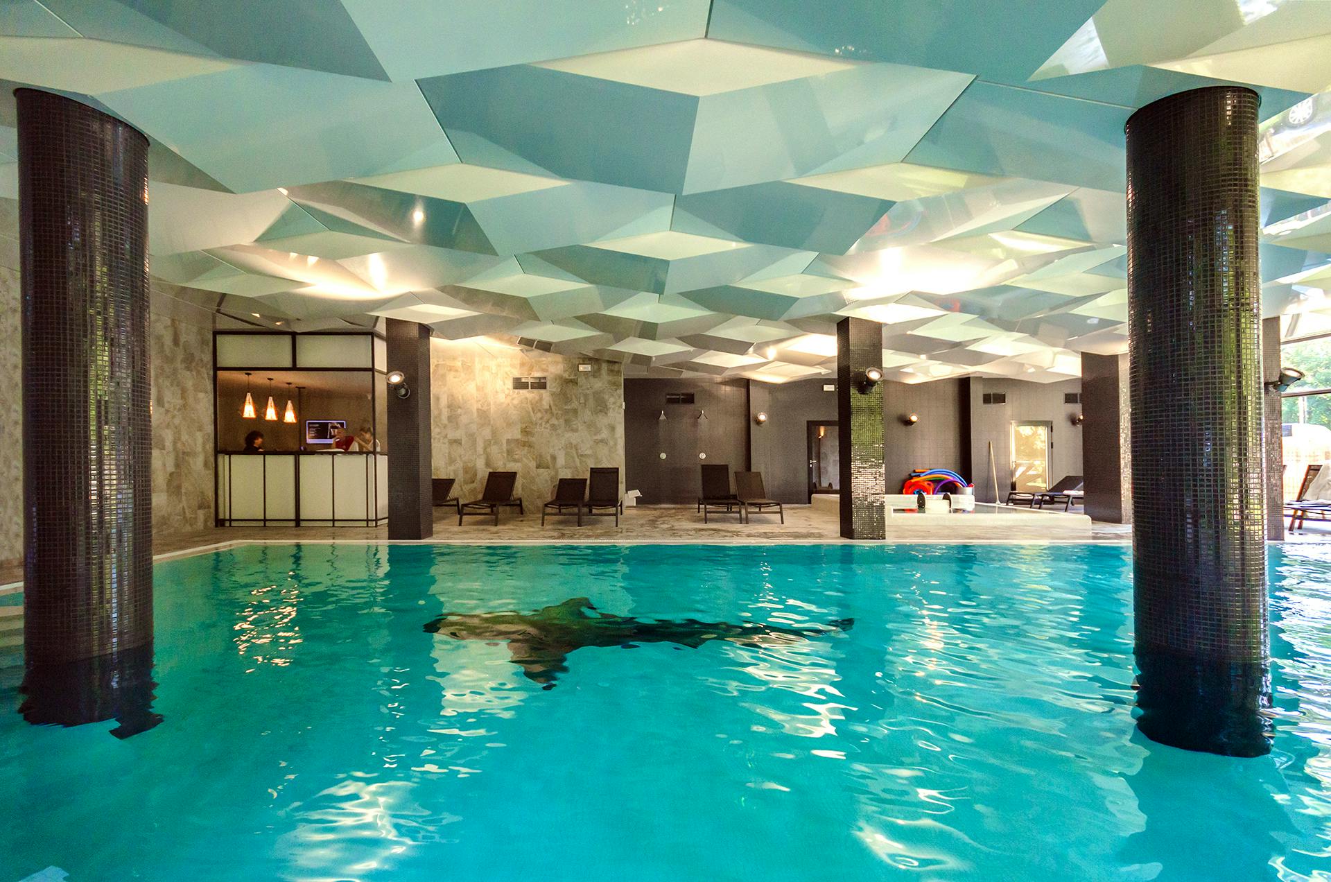 Das Resort des Hotels beherbergt das Schwimmbad (14 x 4 Meter), Whirlpool, Kinderbecken, Salzgradierwerk, Wassergrotte, Sauna, sowie Dampf- und Aromabäder.