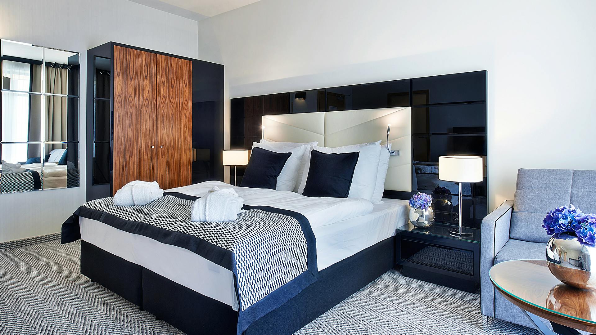 Das 5-Sterne-Hotel verfügt über 152 Zimmer. Die modernen Doppelzimmer-Standard sind ca. 24 bis 30 Quadratmeter groß.