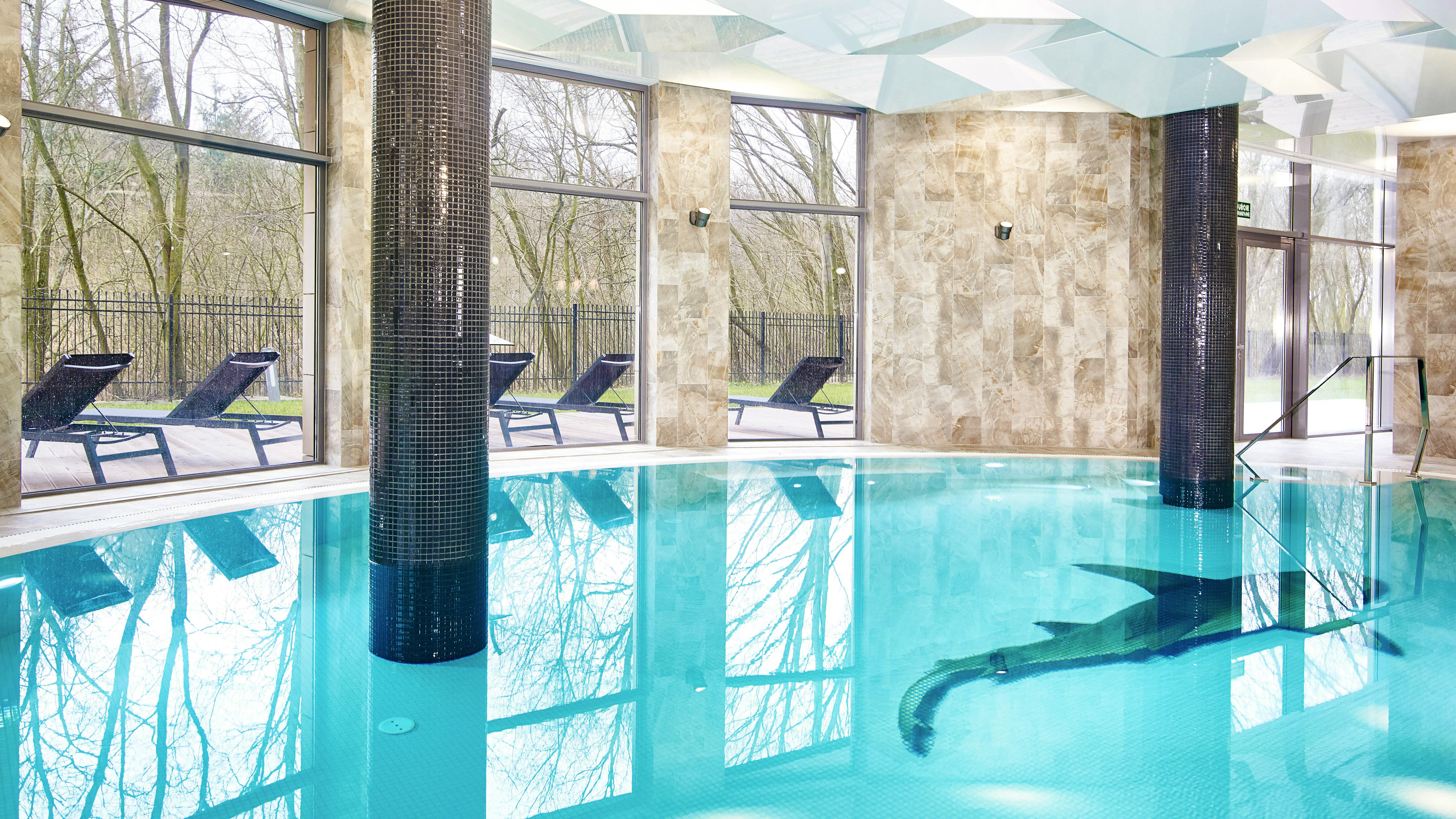 Hoteleingang – © Zdrojowa Group Außenansicht – © Zdrojowa Group Zimmerbeispiel Doppelz. Standart – © Zdrojowa Group Sauna – © Zdrojowa Group Schwimmbad im Diune Hotel – © Zdrojowa Hotels