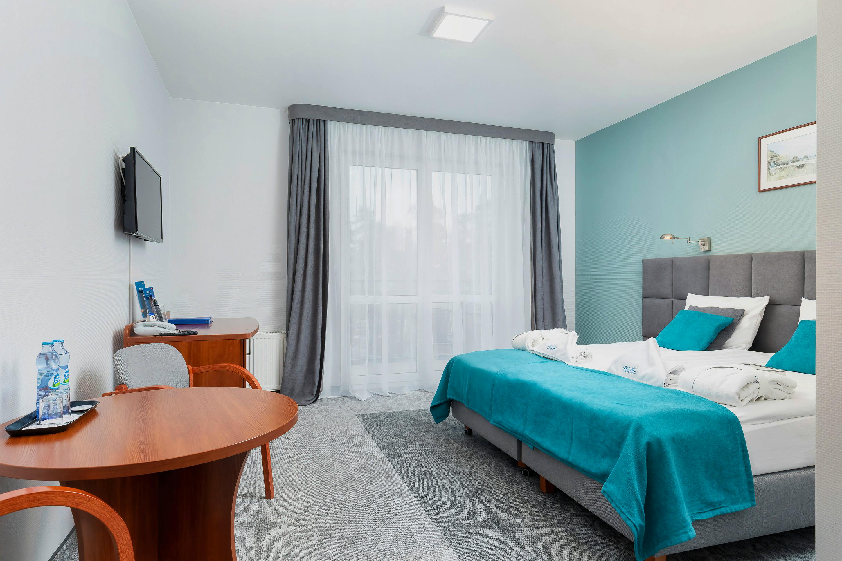 SPA Baginsky und Chabinka - Innenpool – © Spa Baginski & Chabinka - fot. T.Stolz Hotel Spa Baginski & Chabinka - Außenansicht – © Spa Baginski & Chabinka - fot. T.Stolz Hotel Spa Baginski & Chabinka - Schwimmbad – © Spa Baginski & Chabinka - fot. T.Stolz Hotel Spa Baginski & Chabinka - Salzgrotte – © Spa Baginski & Chabinka - fot. T.Stolz Zimmerbeispiel Doppelzimmer im Spa Bagiński & Chabinka – © Spa Bagiński   Chabinka - fot  T Stolz