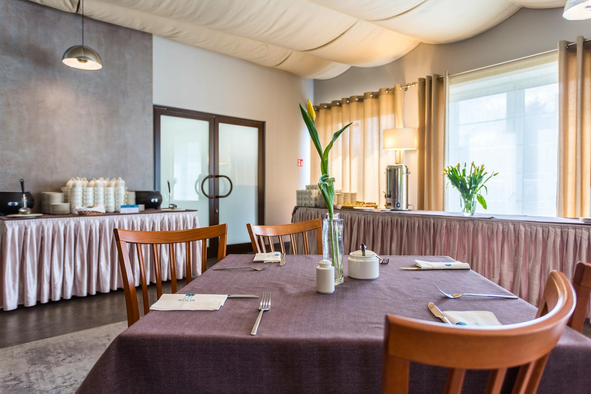 Das modernisierte Hotel Wolin verfügt über eine Rezeption, einen Lift, ein Restaurant mit Sommerterrasse, Café und Bar. Im Garten des Hotels gibt es Liegestühle und einen Grillplatz.