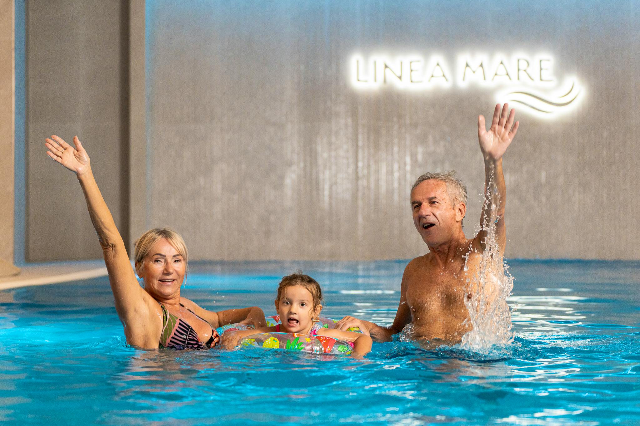Im Linea Mare sind Familien und Kinder herzlich willkommen. Für die kleinen und großen Besucher steht eine Vielzahl an Attraktionen bereit. Der Outdoor-Spielplatz ist unter dem Konzept der motorischen Fähigkeiten entwickelt worden. Neben Balance-Übungen könnn die Kinder hier Schaukeln, Rutschen und Klettern. Der Wellness-Bereich ist für Familien mit Kinderbecken und Wasserattraktionen sowie einer Familiensauna ausgestattet.