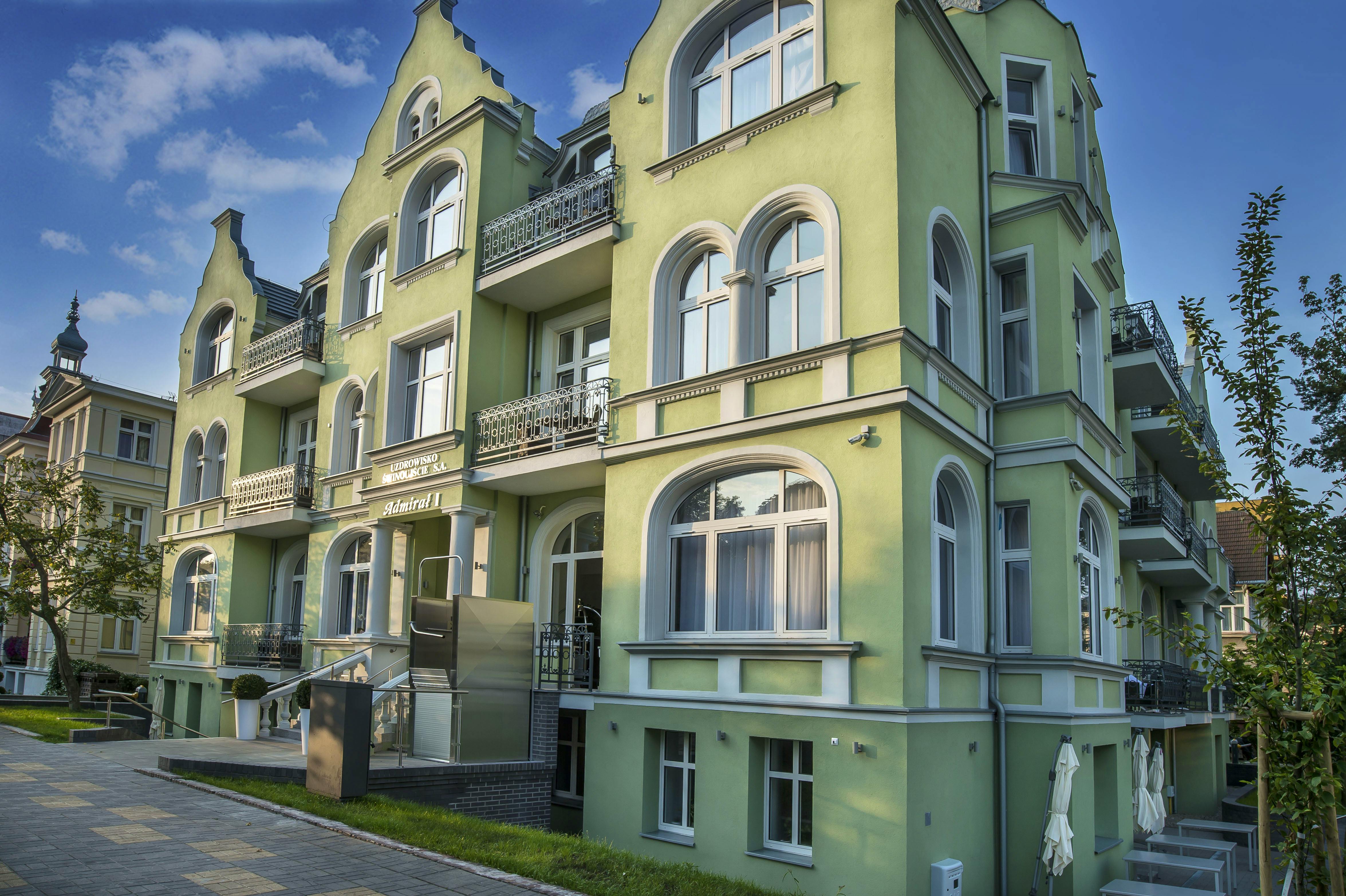 Das Kurhotel Admiral mit seiner kleinen Anzahl an Zimmern gehört der städtischen Kuraktiengesellschaft. Das villenartige Gebäude im Seebäderstil wurde im 19. Jahrhundert gebaut und ist 2015 komplett saniert worden - inklusive einer Erweiterung um eine neue Wellnessabteilung.