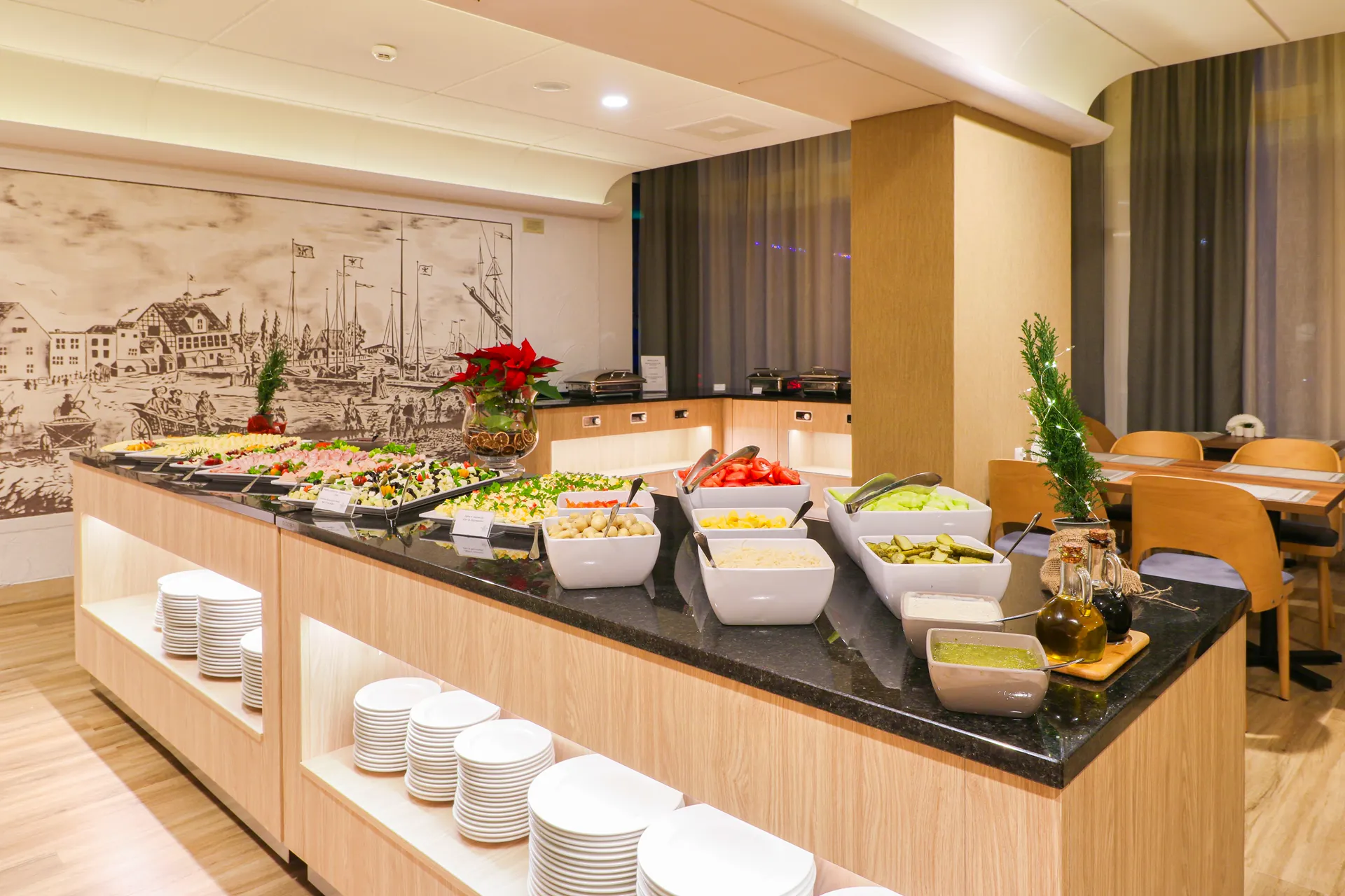 Das Frühstück im Afrodyta Spa erhalten Sie vom Buffet. Das Abendessen erhalten Sie je nach Belegung vom Buffet oder serviert. Bei Buchung des Mittagessens wird Ihnen dieses im Hotel als Menü serviert. Beim Mittagessen und Abendessen erhalten Sie Wasser und Tee dazu.