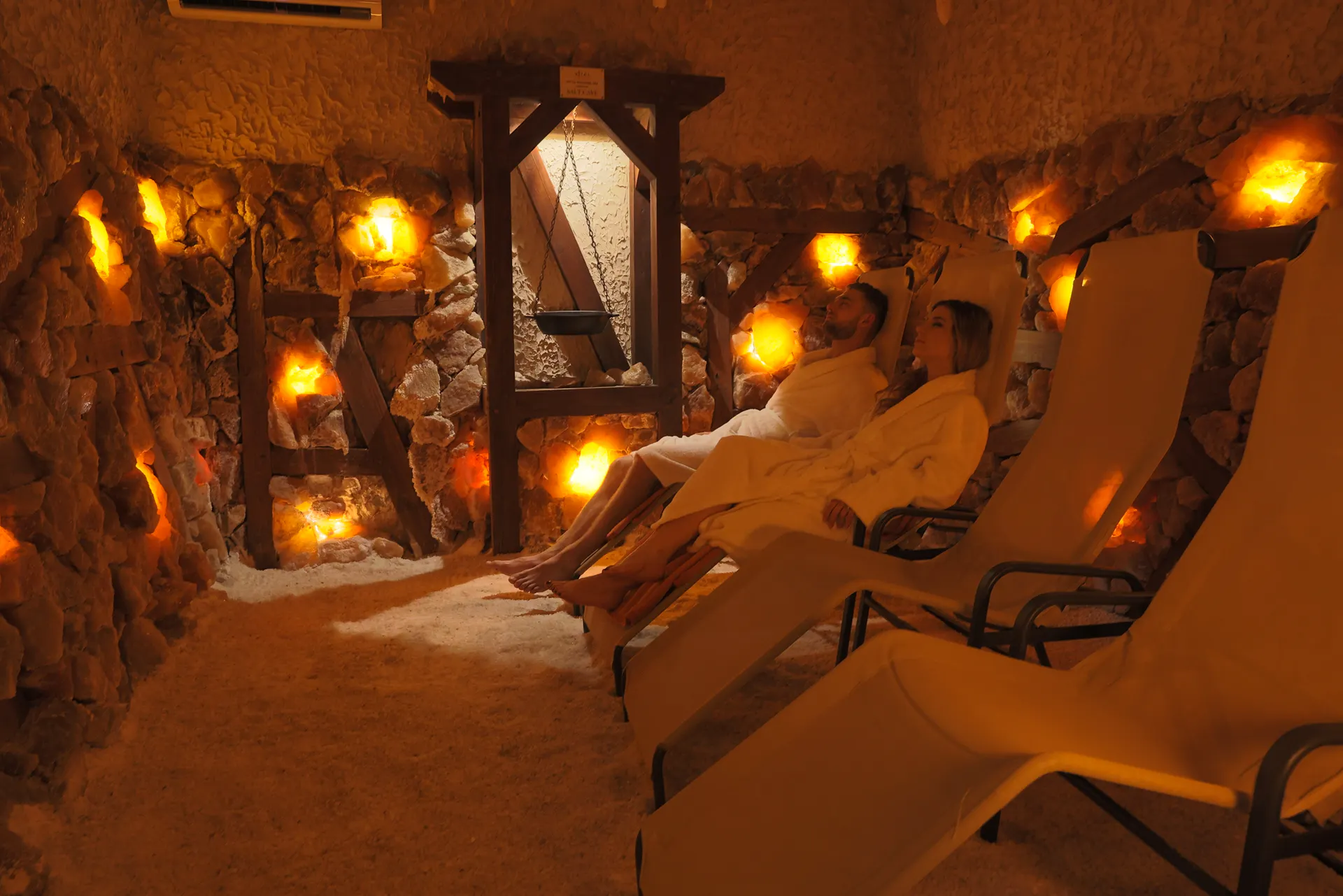 Außenansicht Kaisers Garten – © IdeaSpa Salzgrotte im Hotel Kaisers Garten – © IdeaSpa Travel Lobbybereich Hotel Kaisers Garten – © IdeaSpa Buffetrestaurant im Hotel Kaisers Garten – © IdeaSpa Travel Schwimmbad im Hotel Kaisers Garten – © IdeaSpa Travel