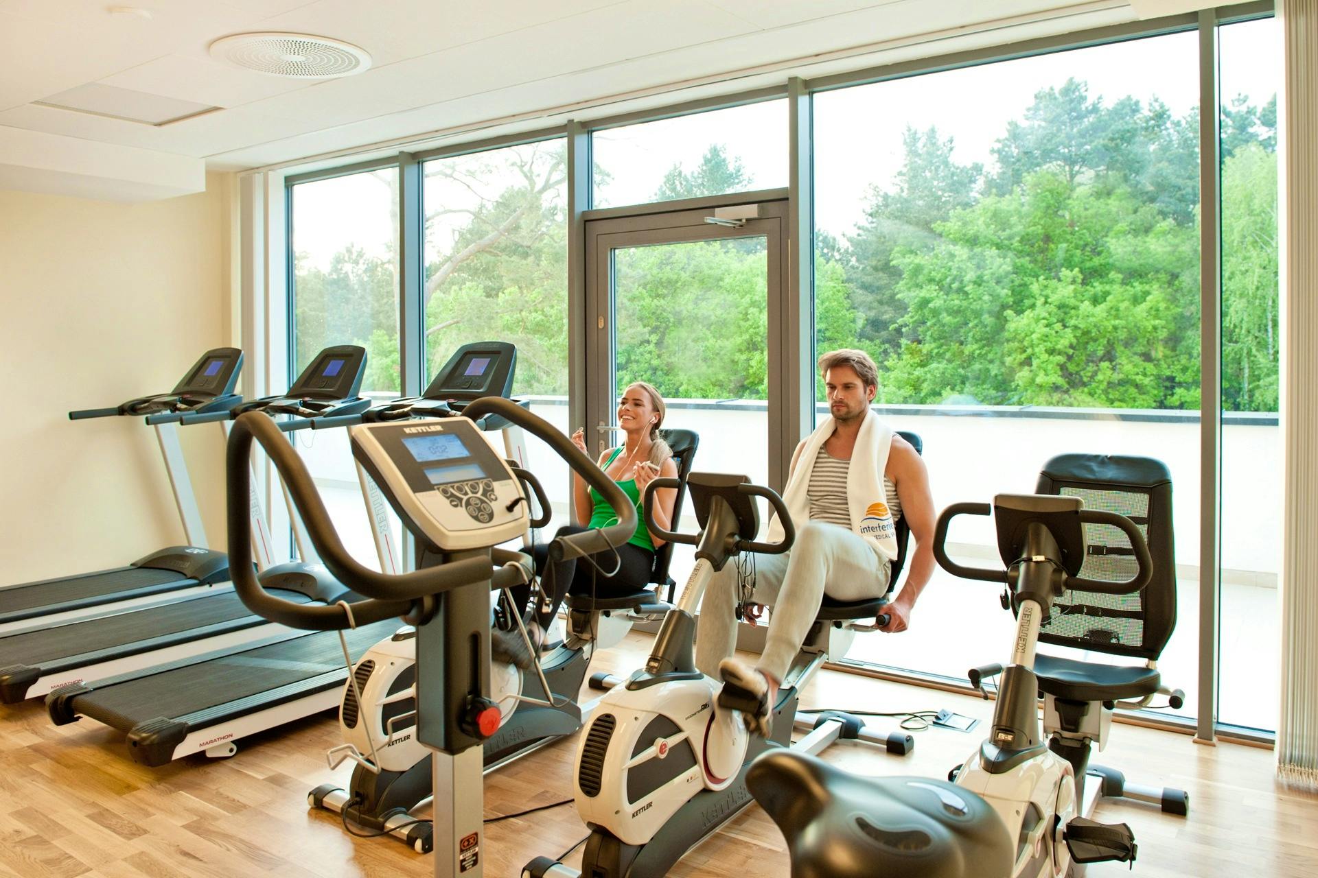 Wer lieber aktiv entspannt, kann sich im modernen Fitnessraum austoben.