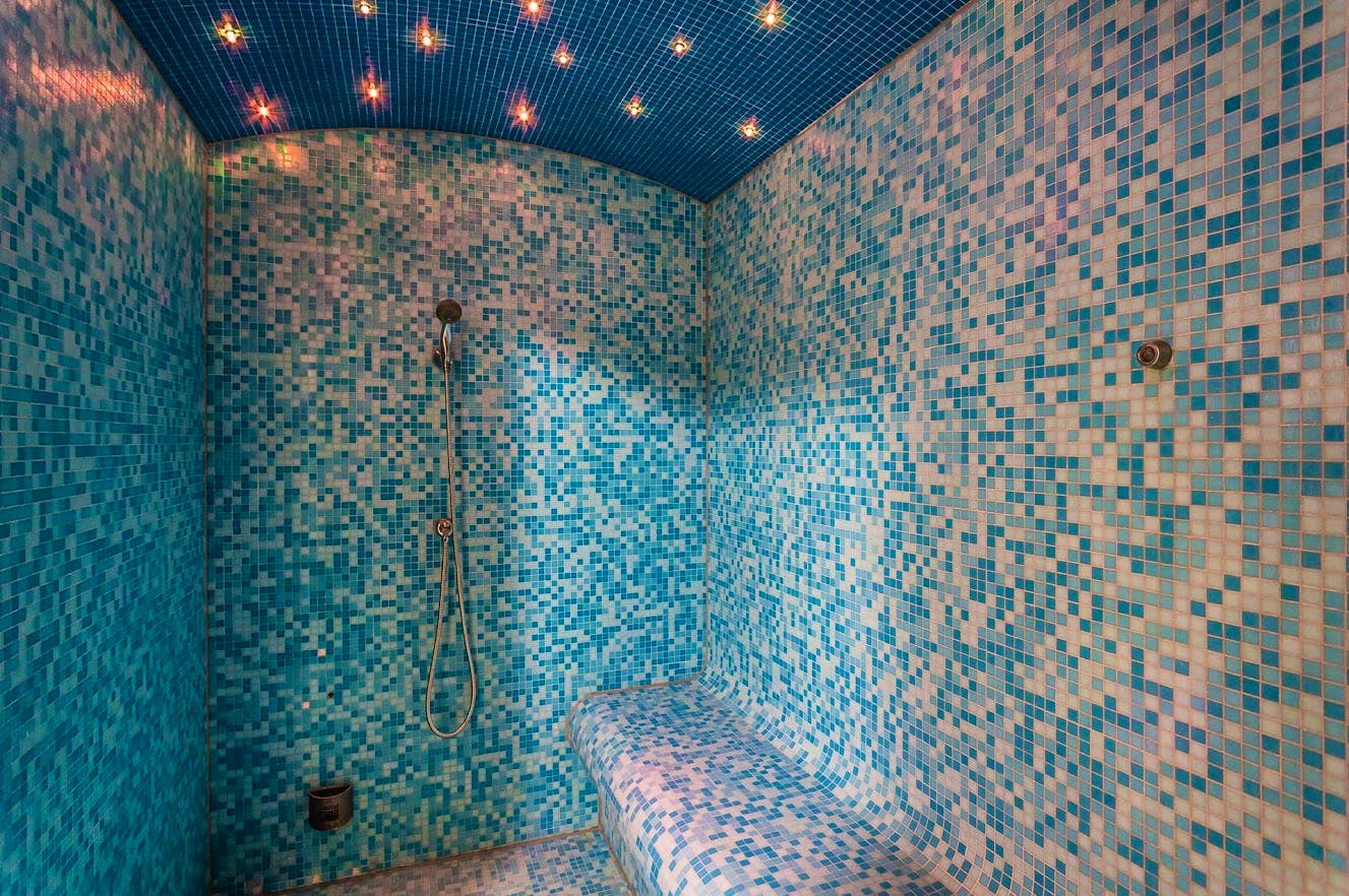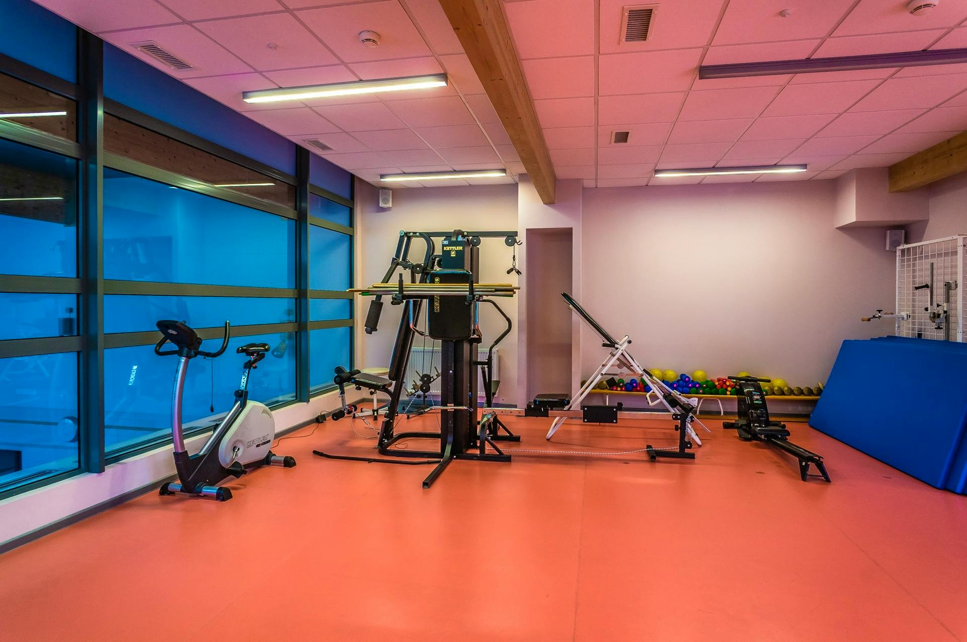 Der Wellness-Bereich ist ausgestattet mit einem Hallenbad (15 x 6 Meter) inklusive fünf Massagestationen, Gegenstromanlage, Schwalldusche, Whirlpool und Trockensauna (gegen Gebühr), sowie einem Fitnessraum.