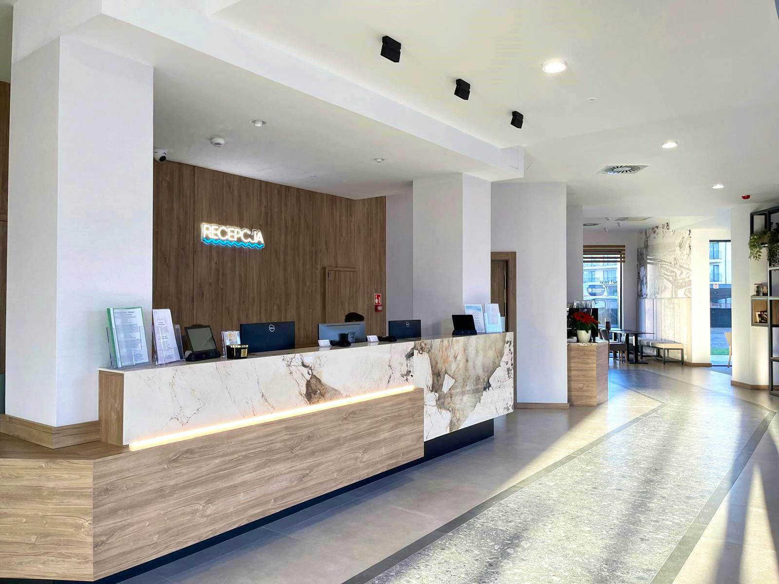 Zimmerbeispiel Hotel Platino Mare, Swinemünde – © IdeaSpa Schwimmbad im Platino Mare – © IdeaSpa Außenansicht Hotel Platino Mare – © IdeaSpa Rezeptionsbereich im Platino Mare – © IdeaSpa Whirlpool im Hotel Platino Mare – © IdeaSpa
